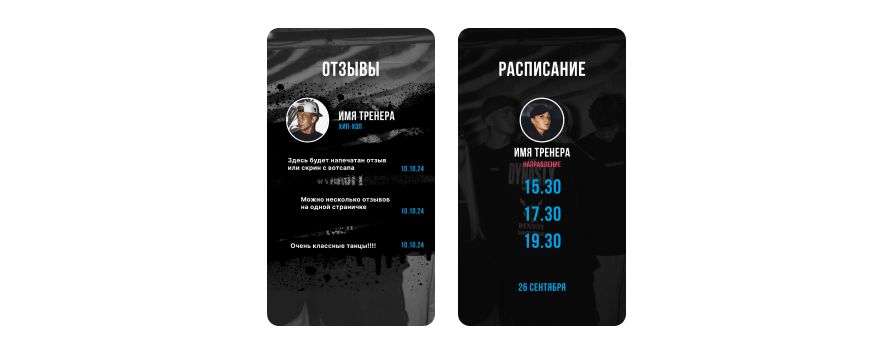 - Информирование о предоставляемых услугах и танцевальных направлениях