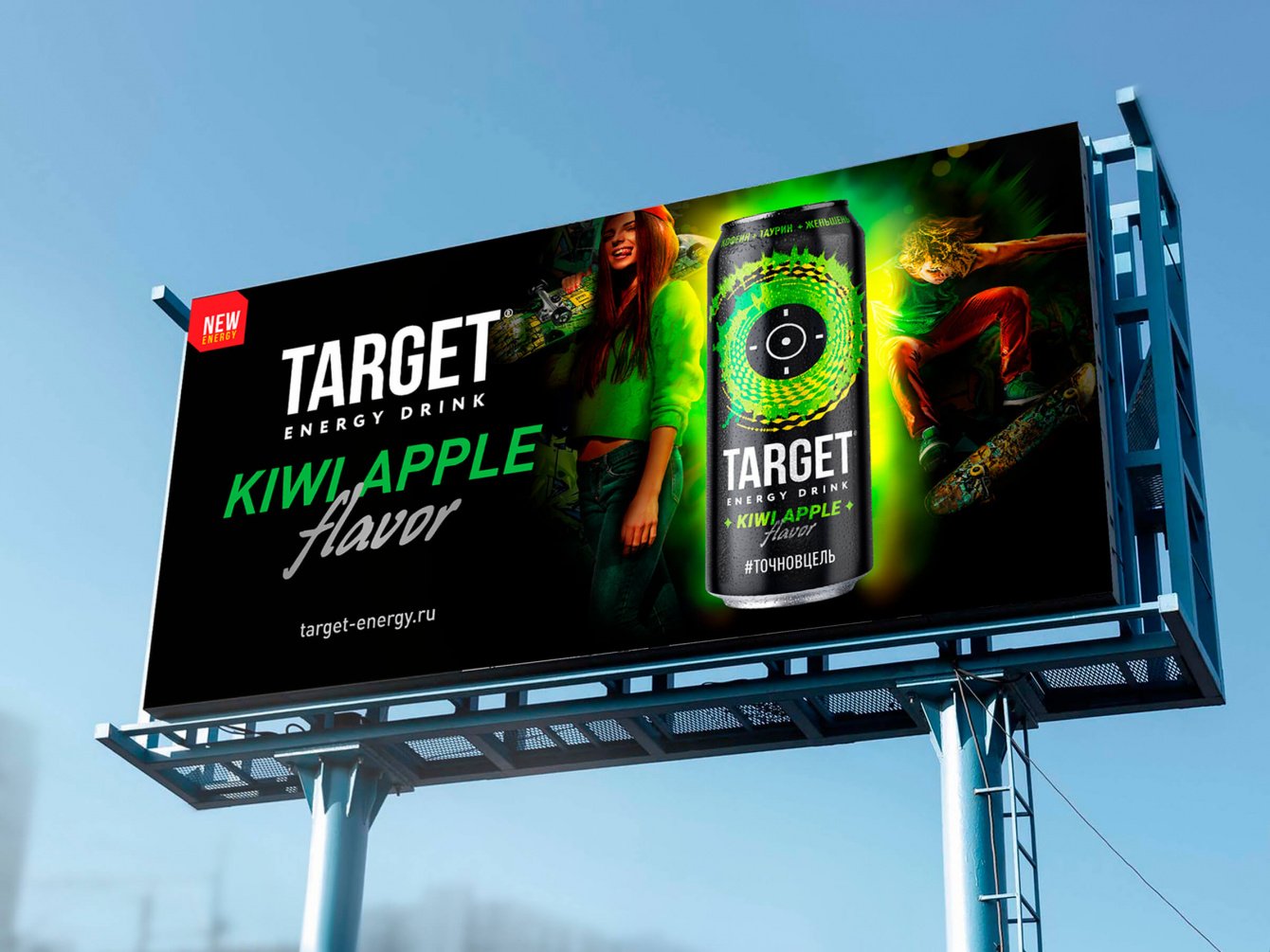 Было необходимо поддержать мощный выход на рынок новых ярких энергетических напитков, обозначить четкое позиционирование в офлайн и онлайн среде. TARGET известен своим энергичным стилем и мощным зарядом.