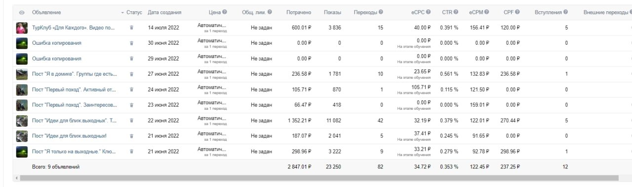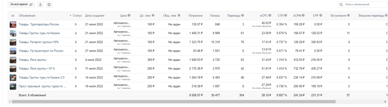 После оформления всех соц. сетей мы разработали еженедельный план продвижения туров выходного дня, подготовили рекламные креативы и запустили таргетированную рекламу в вк.