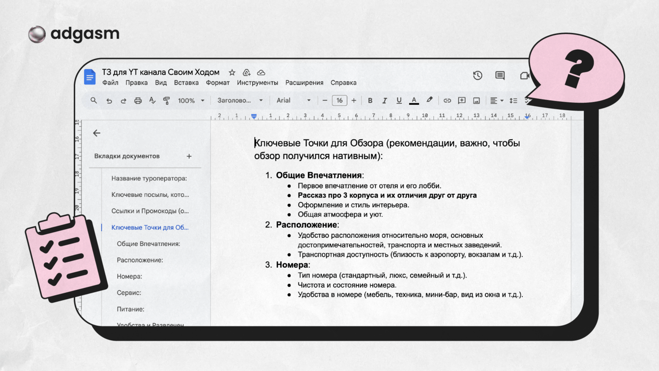 Чёткость тоже была. Прописывали ключевые посылы, брендовые формулировки, дедлайны, этапы работ и технические требования.