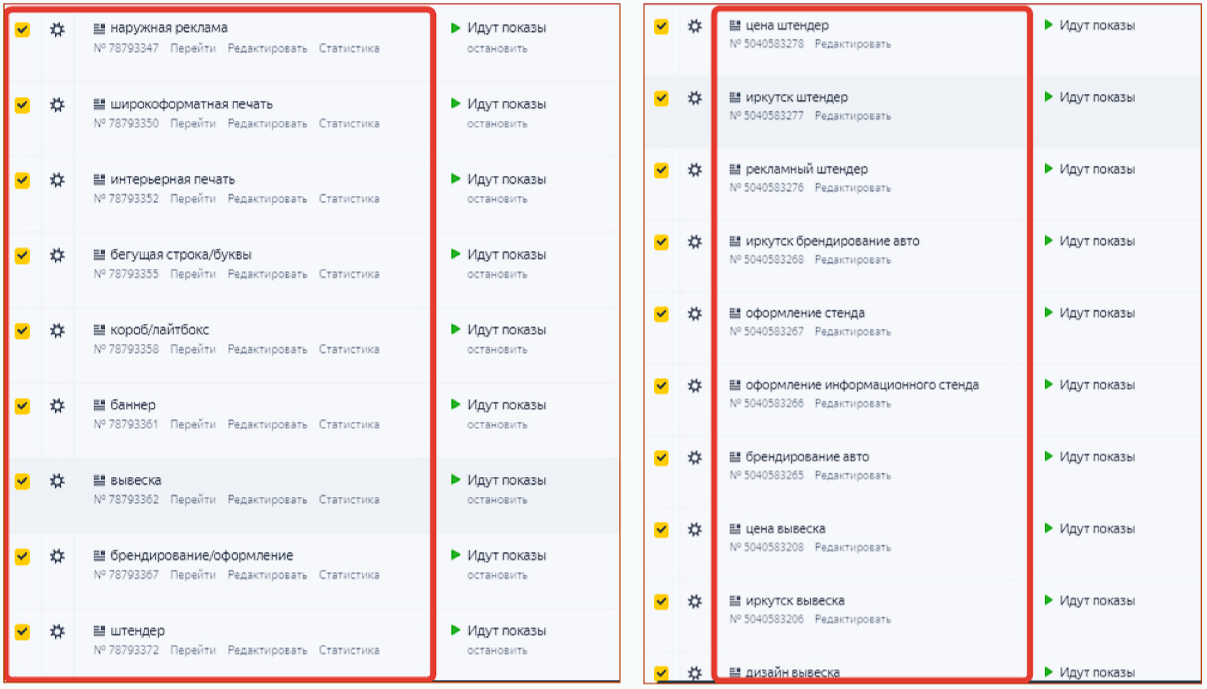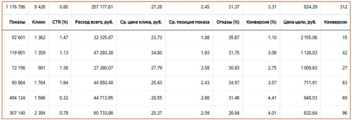 Но без оптимизации не обошлось. Например, тестирование показало, что категория таргетинга «широкие запросы» неэффективна. Поэтому она была отключена.