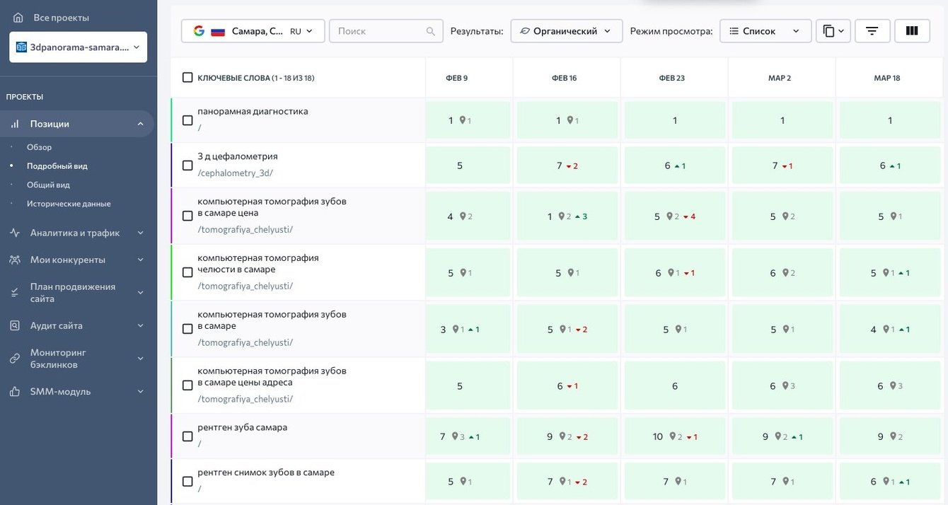 Вывести в ТОП Google и Яндекс сайт узкоспециализированной клиники по основным направлениям услуг: панорамная диагностика, рентген зубов, панорамный снимок зубов, ортопантомограмма зубов.