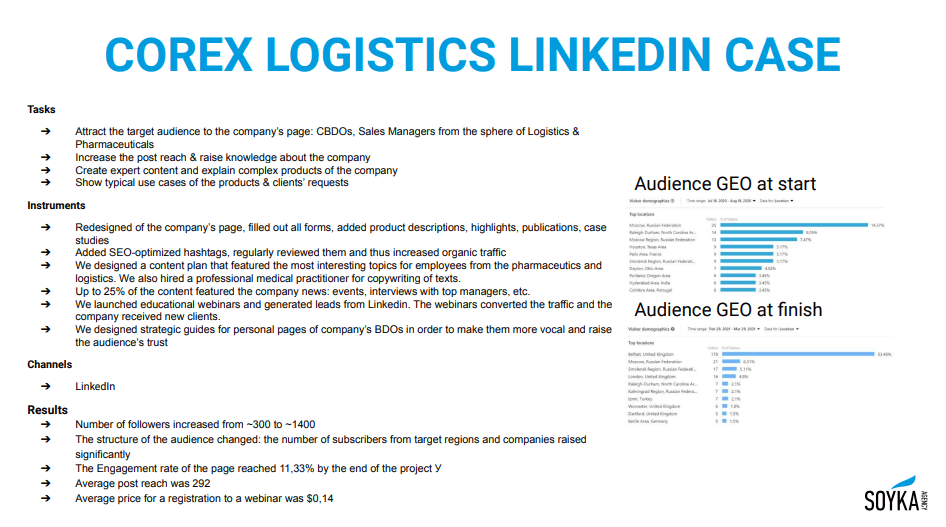 - Запуск вебинаров для обучения и генерации лидов с LinkedIn, привлекающих новых клиентов.