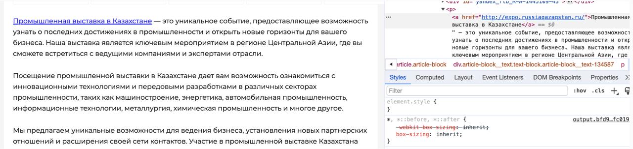 Кроме качественных площадок также важно корректно размещать сами ссылки. В данном случае нам необходимо было продвинуть анкорную ссылку, без тега