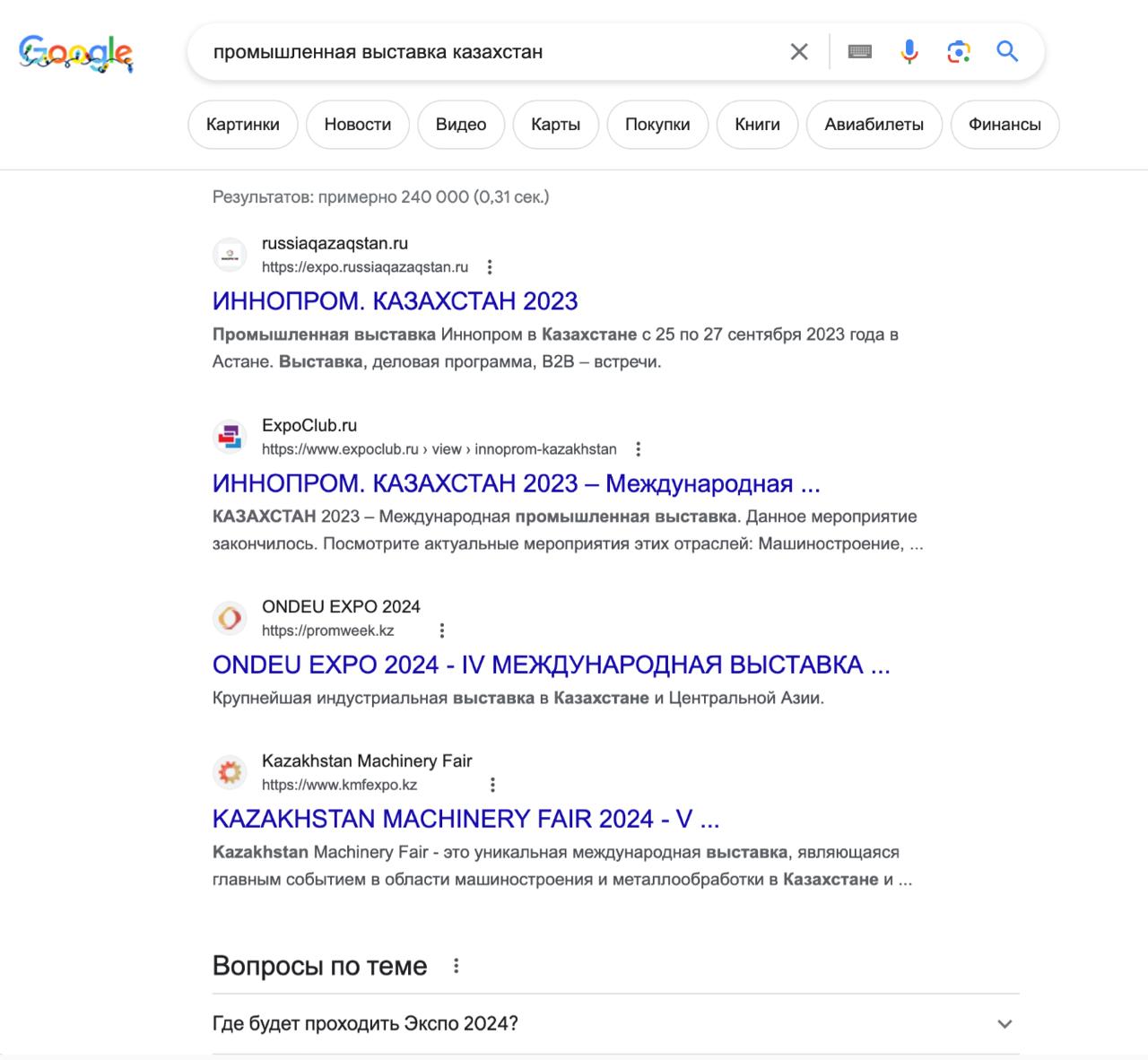 За короткое время добиться от нового сайта expo.russiaqazaqstan.ru поднятия в топ в Google (1-3 позиции) в Казахстане по запросам типа "Иннопром Казахстан" и "Промышленная выставка в Казахстане"
