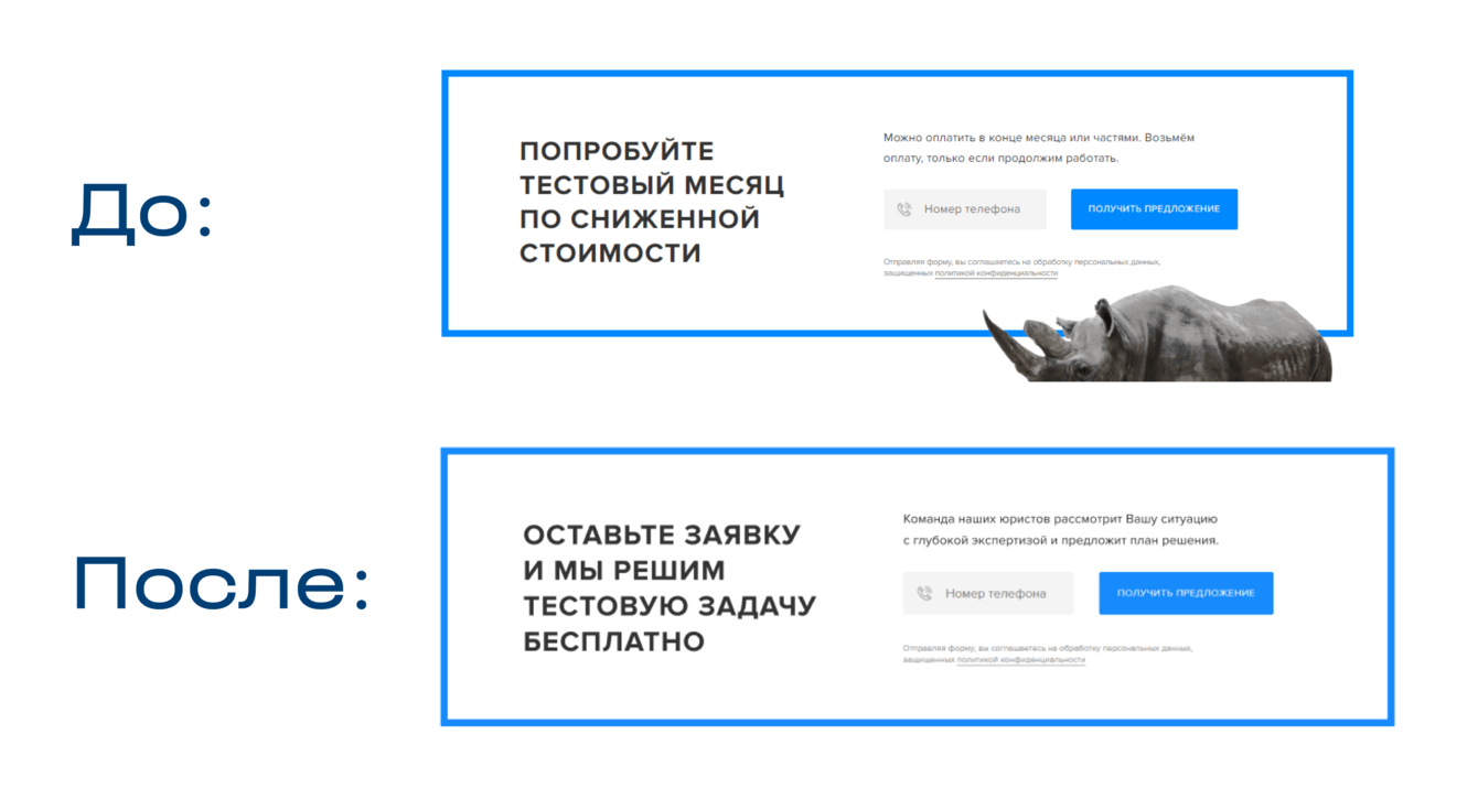 - поменяли CTA в форме с заявкой на более актуальный и рабочий вариант.