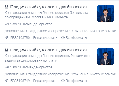 Поэтому по таким запросам мы тестируем фильтры на уровне заголовков объявлений, чтобы отсортировать нецелевые заявки. По запросам, например, "юридические услуги москва" показывали объявление "юридический аутсорсинг для бизнеса от … руб/месяц в москве".