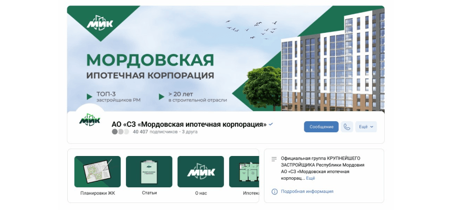 Соцсети застройщиков Республики Мордовия почти не ведутся.