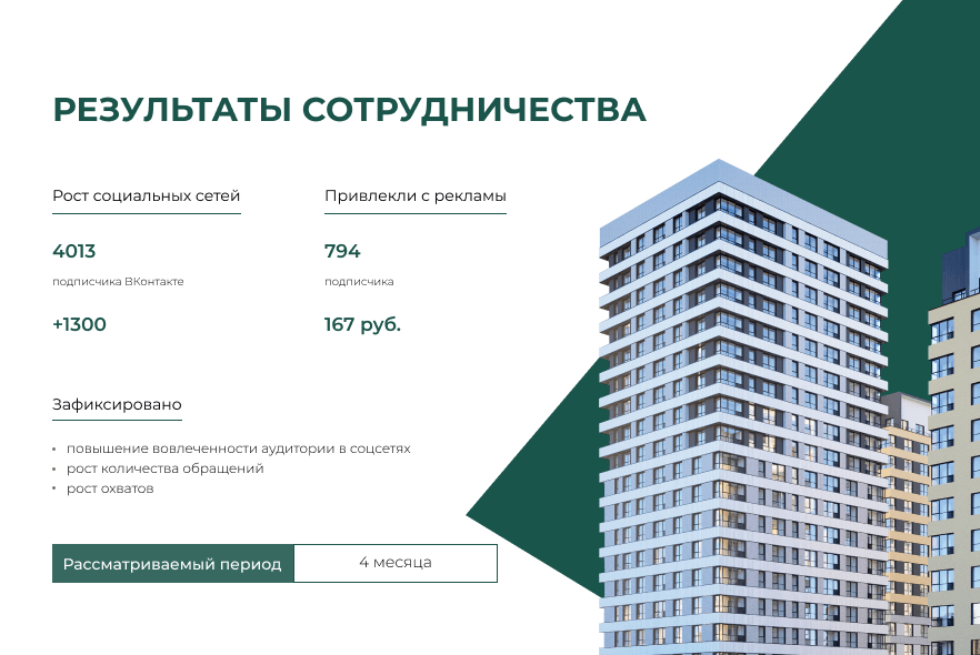 Таргетированная реклама может стать мощным инструментом продвижения застройщика, но при этом важно понимать особенности платформы и ее пользовательской базы.С помощью таргетированной рекламы мы можем как искать людей, заинтересованных в покупке новой квартиры, так и выстраивать комьюнити вокруг компании.Цель рекламной кампании — переходы и вступления в сообщество.