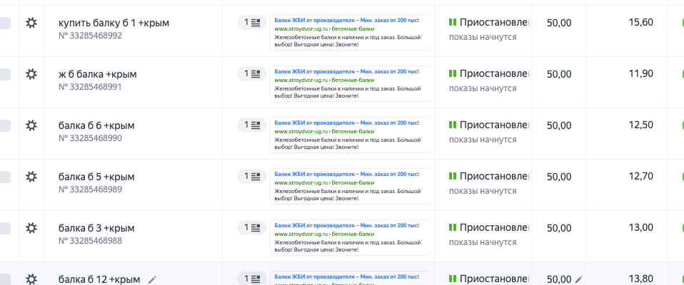 -Аналогично для отработки аудиторию находящихся в Краснодарском крае и республики Крым в РСЯ создаём кампании и подготавливаем объявления. Делаем копии рекламных кампаний и оставляем запросы с городом.