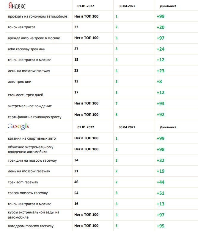 За обозначенный период продвижения сайта https://www.race-x.ru/ проведен комплекс