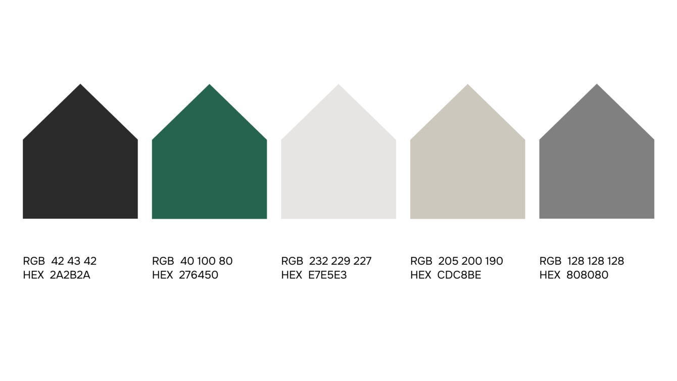 Цвета — глубокий зелёный, серый и бежевый. Они ассоциируются с природой, архитектурой и надёжностью.