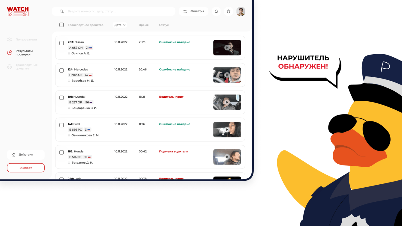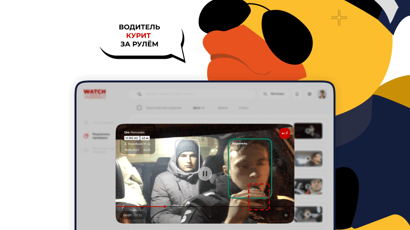 Watchmen — продукт для каршеринговых сервисов, позволяющий автоматически идентифицировать личность водителя, а также контролировать его поведение, чтобы предотвратить опасные и вредные ситуации.