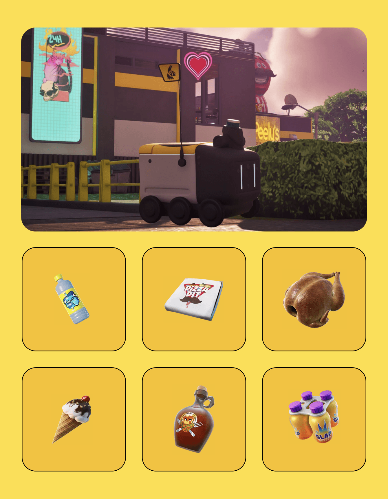 Во время игры вы встретите предметы, хорошо знакомые вам в реальном мире. Вместительные сумки курьеров, в которых они развозят ваши любимые блюда, быстрые самокаты и даже милашки роботы-доставщики.
