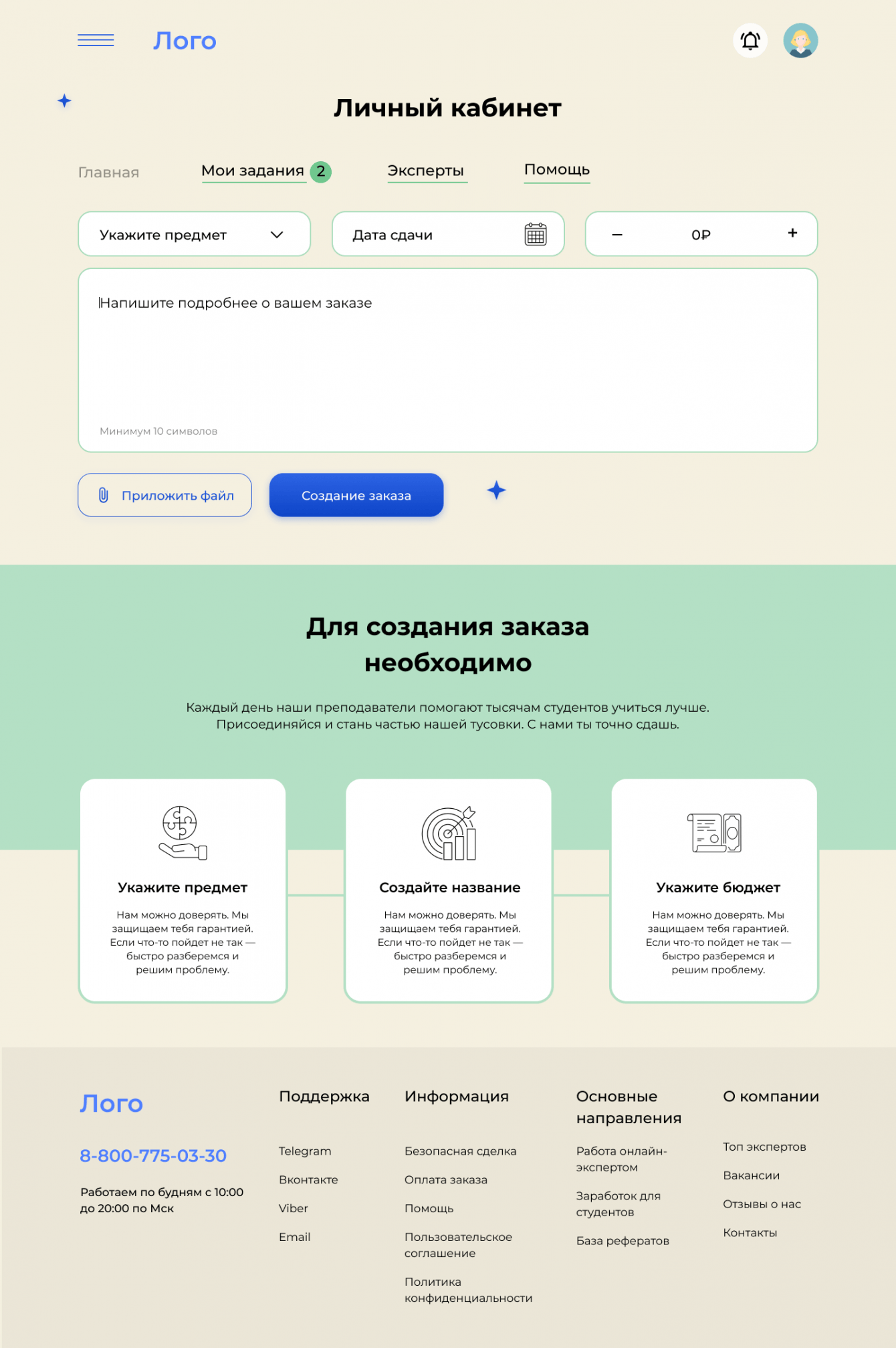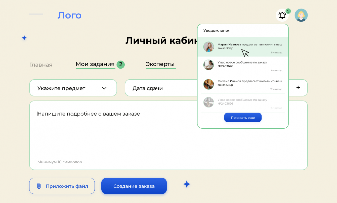 Задача: проектирование и реализация сервиса по написанию работ для студентов и школьников на заказ