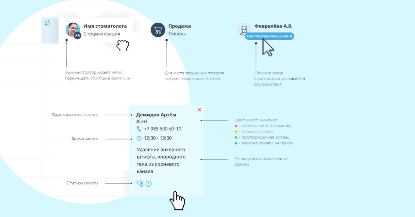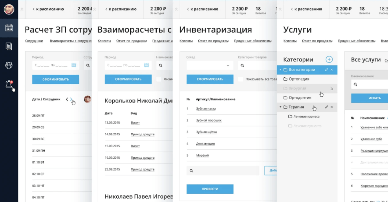 Наша задача: создать понятный, чистый и интуитивный интерфейс для администраторов и врачей стоматологических клиник.