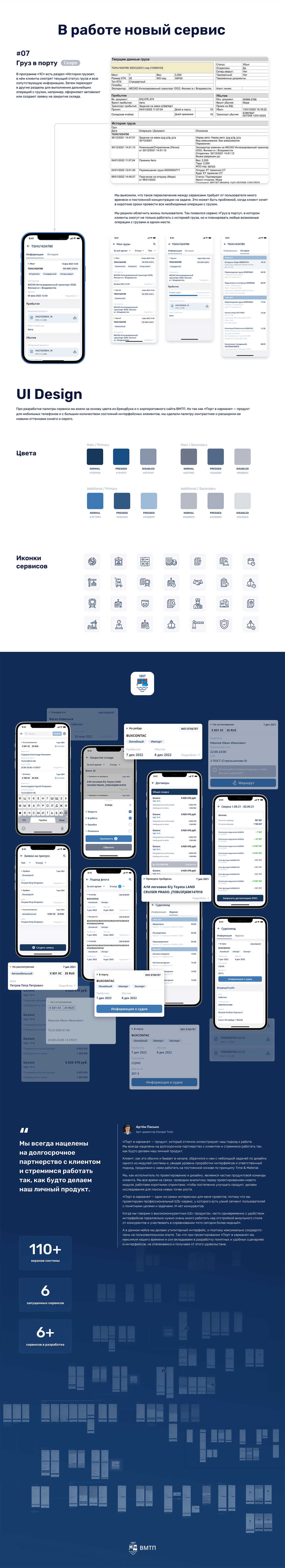 Изначально клиент обратился к нам с небольшой задачей по дизайну одного из модулей системы и, увидев уровень проработки интерфейсов и ответственный подход, продолжил с нами работать на постоянной основе по принципу Time & Material. Сейчас мы, как исполнитель по проектированию и дизайну, являемся частью продуктовой команды ВМТП.