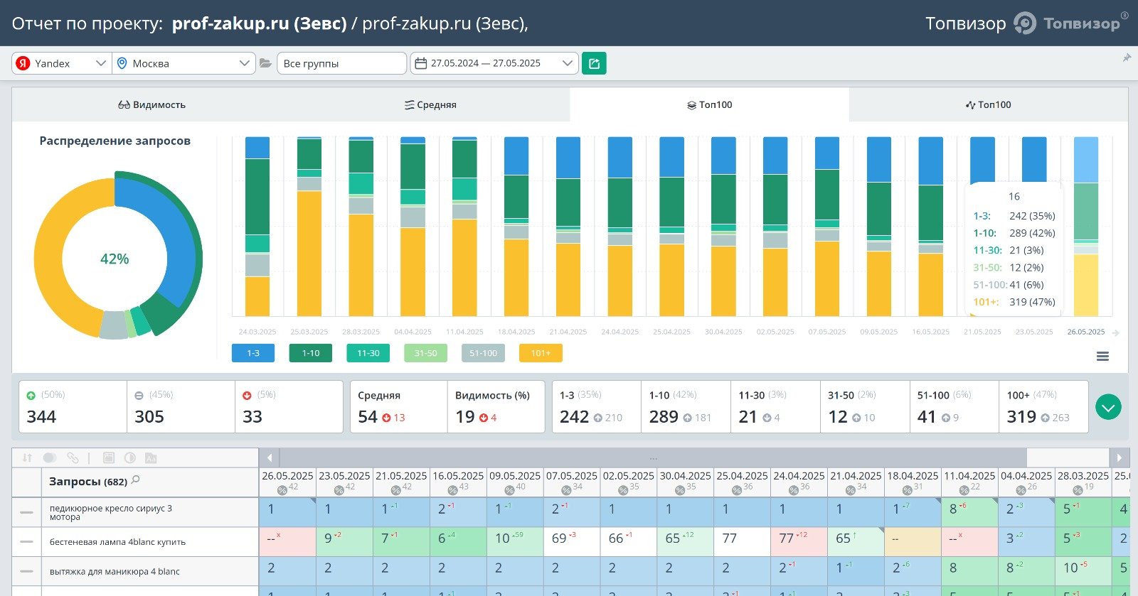 3. Отчетность по динамике роста позиций сайта в поисковой системе «Яндекс» по согласованной семантике и региону продвижения (еженедельно).