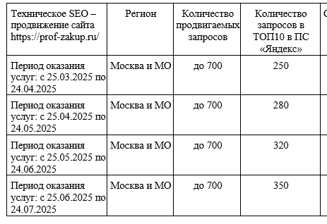 1. Повышение релевантности страниц сайта согласно графику, согласованного в первом периоде работ. Функция копирайтинга осуществляется Исполнителем.