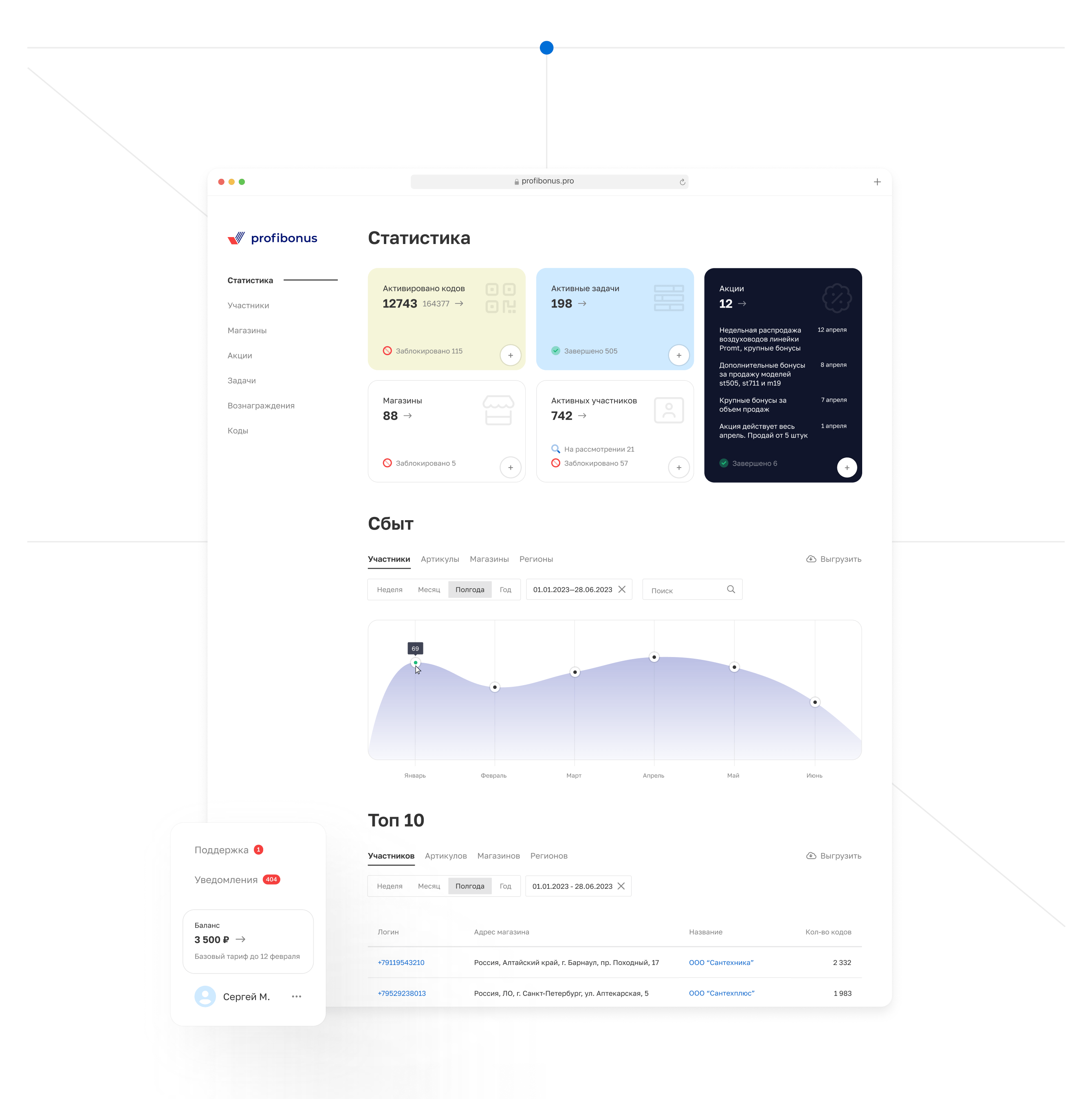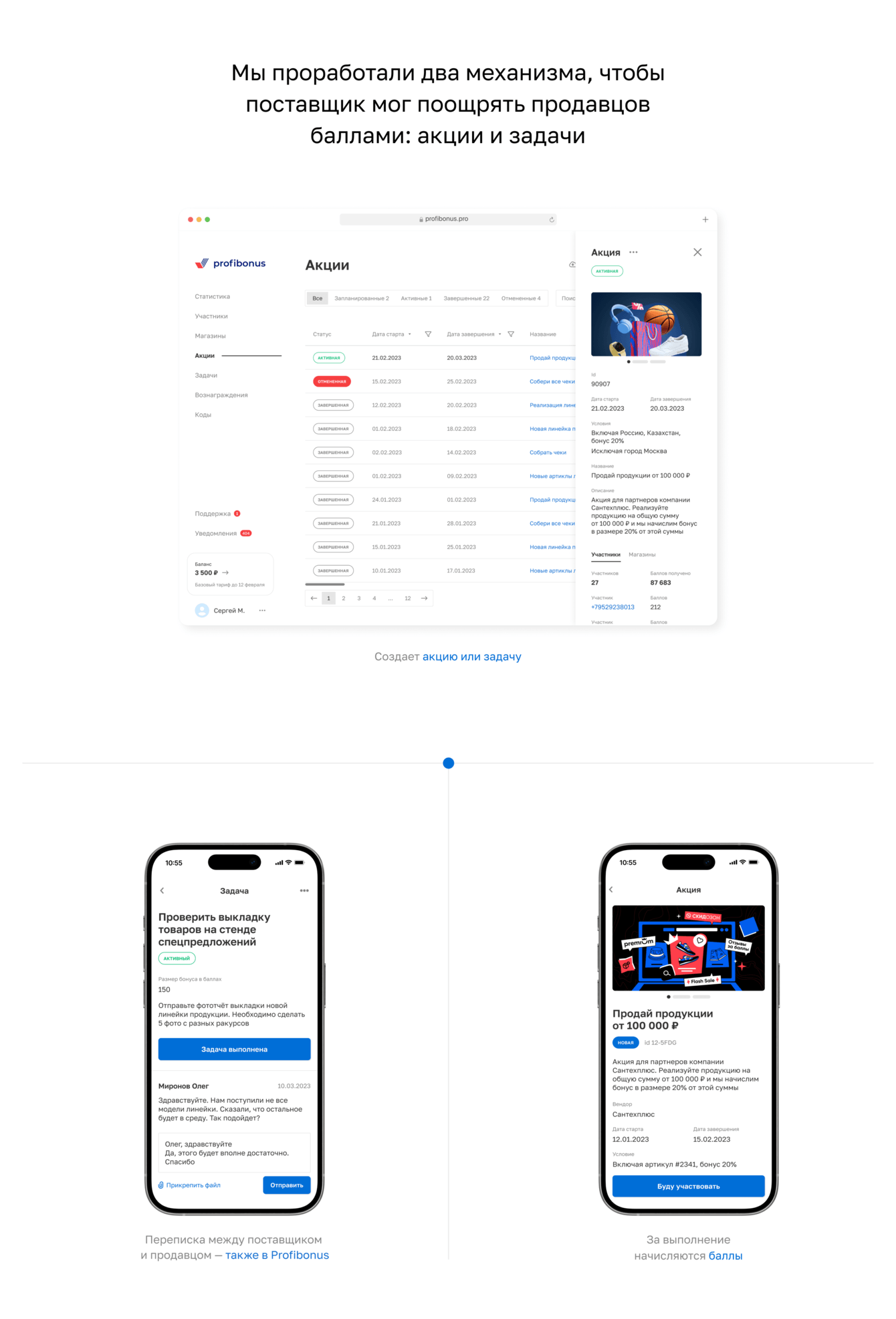 Компания ООО «Совтехпро» обратилась к нам за дизайном и проектированием сервиса Profibonus, который объединит поставщиков и продавцов, упростит их коммуникацию и позволит быстро приходить к общему результату — увеличению продаж