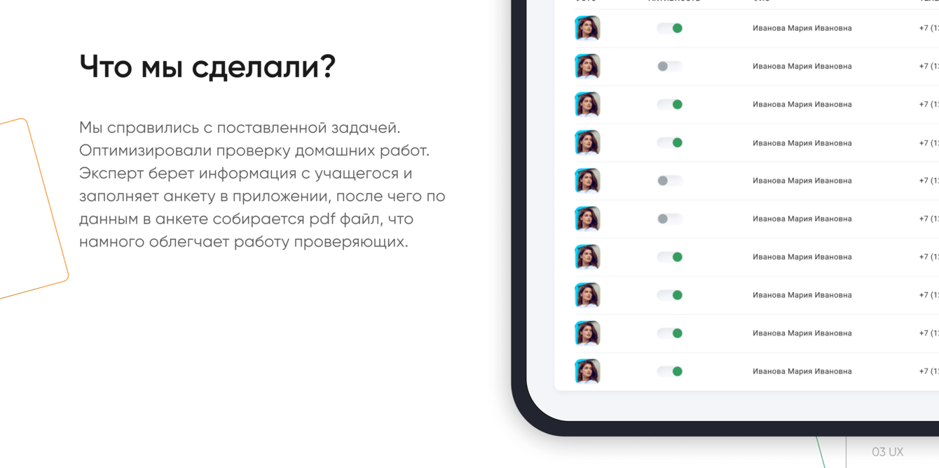 Отрисовали сначала UX, далее продумали все возможные взаимодействия сотрудников и учеников заказчика с будущей платформой.