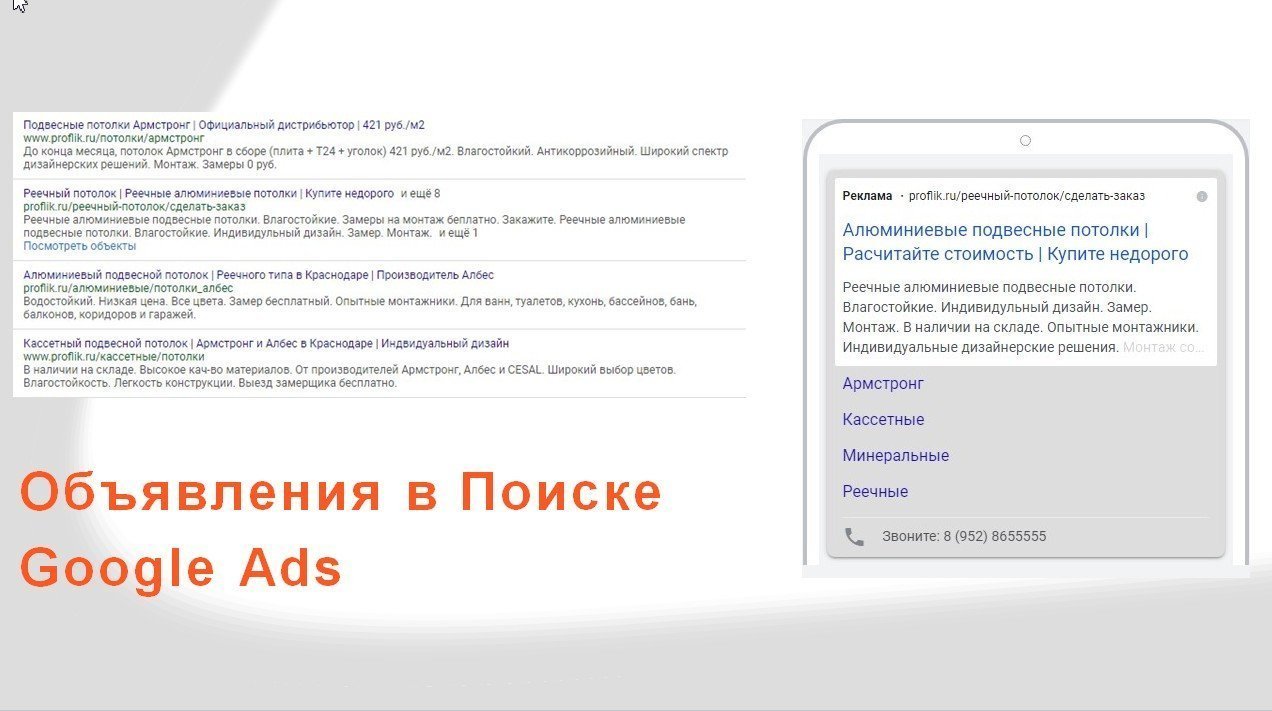 Результаты контекстной рекламы в Google:
