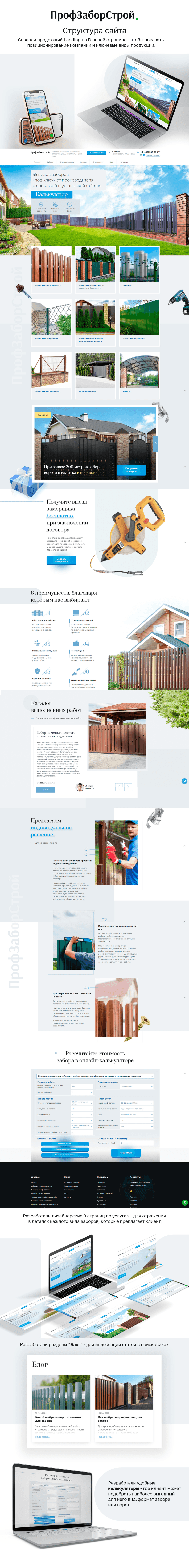 Разработали дизайнерские 8 страниц по услугам — для отражения в деталях каждого вида заборов, которые предлагает клиент.