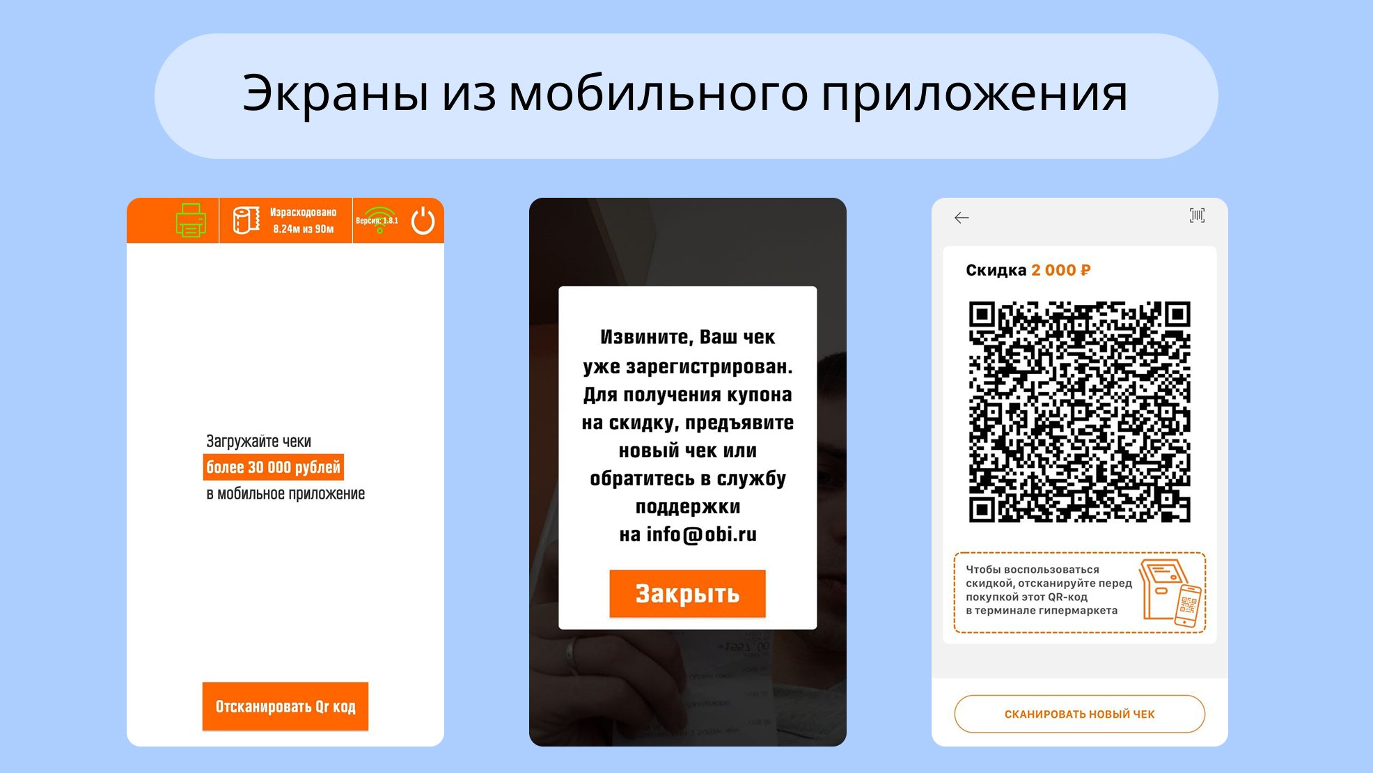 Крупнейшая российская торговая сеть ОБИ в 2019 году решила организовать специальную маркетинговую акцию — «Выгодный сезон». Цель акции заключалась в стимулировании повторных покупок клиентов сети путем выдачи специальных купонов на скидку при следующей покупке. За время сотрудничества мы перезапускали акцию 3 раза, каждый раз меняя условия участия и функциональность нашего ПО.