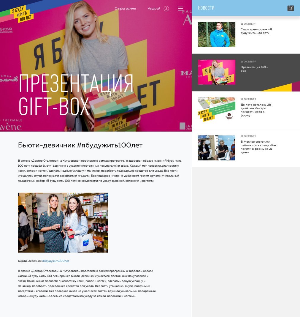 Разработать сайт инновационной программы, которая была разработана профессионалом в сфере здоровья и красоты – сетью аптек «Доктор Столетов». Проект призван популяризировать здоровый образ жизни, занятия спортом и заботу об экологии.