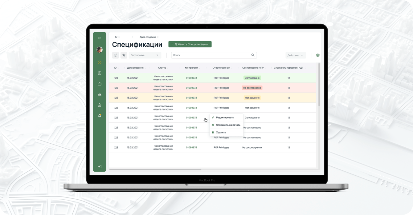 Мы разработали удобную систему для менеджеров, которая напоминает привычные google-таблицы, но более умные и функциональные. С помощью CRM менеджеры имеют разный доступ к спецификациям и заказам в одном месте, логисты могут легко и быстро находить маршруты на обратный рейс.