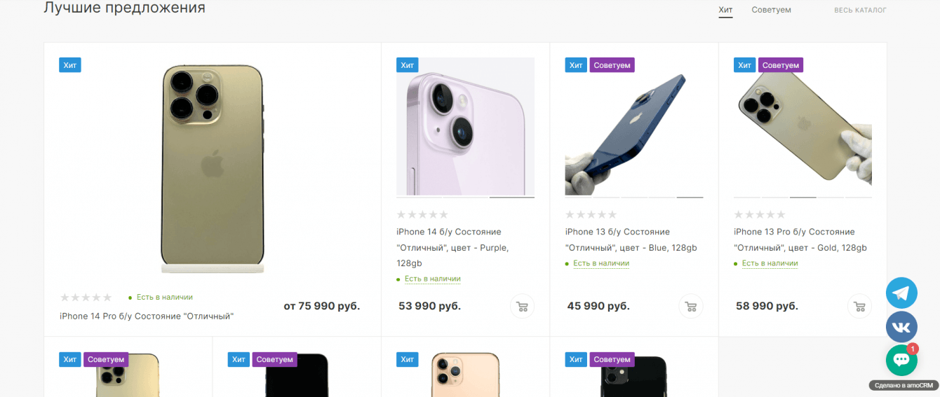 • Интеграция с товарно-учетной системой МойСклад, amoCRM, коллтрекинга,