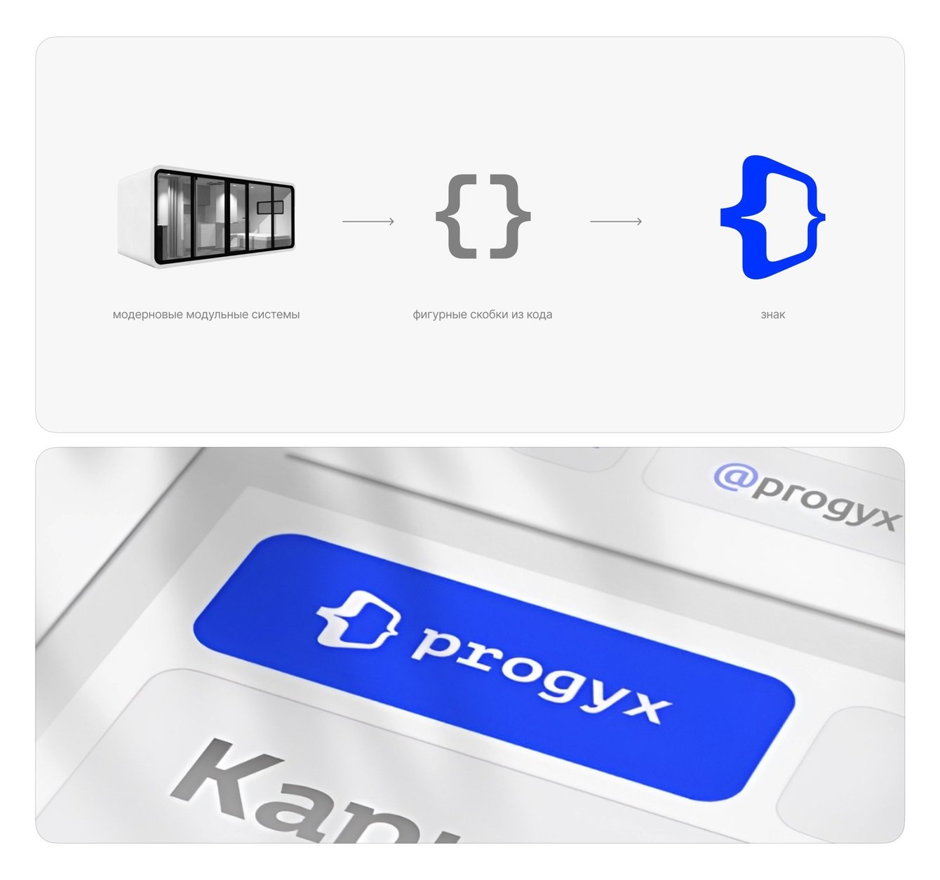 При создании логотипа мы руководствовались идеей модуля: школа {progyx} представляет собой капсульную систему образования, в которой из готовых модулей можно составить собственный индивидуальный образовательный трек.