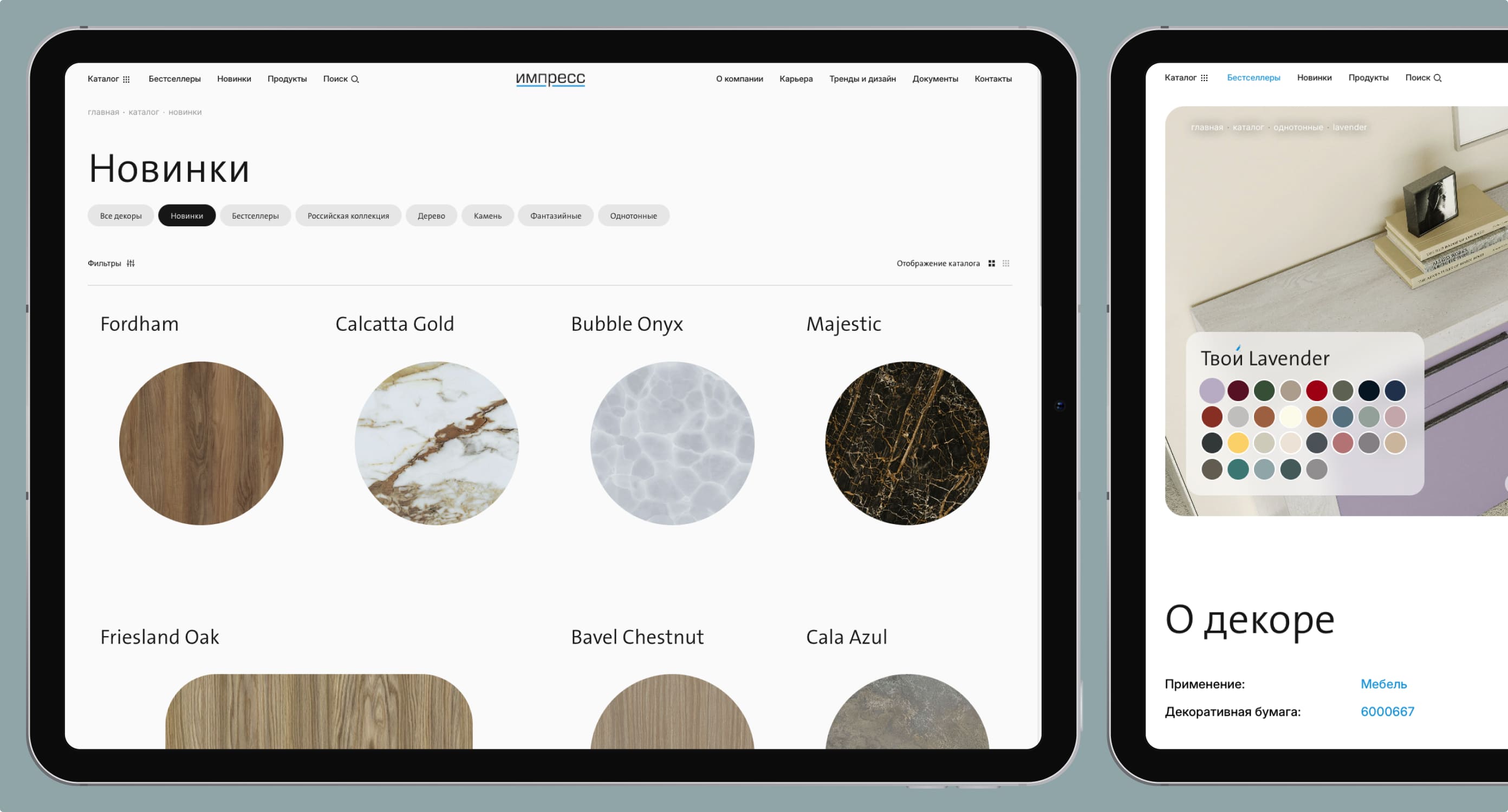 Impress — международная компания, специализирующаяся на создании уникальных декоров для мебели, напольных покрытий и других поверхностей. Целевая аудитория бренда — корпоративные клиенты.