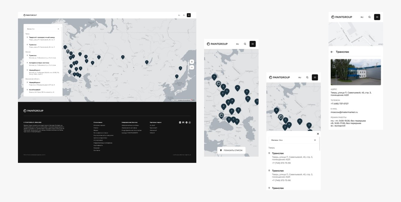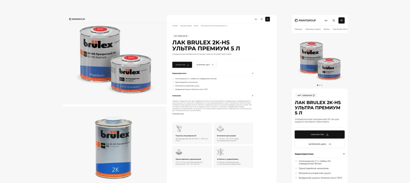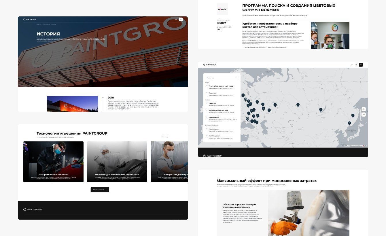 Мы проанализировали большое количество сайтов в данной отрасли, в том числе зарубежных. Изучили их структуру, основные паттерны и разработали свою концепцию, основанную на прозрачной подаче контента, чтобы рассказать о полном цикле производства лакокрасочных покрытий, от разработки формул до внедрения технологий в работу предприятий.