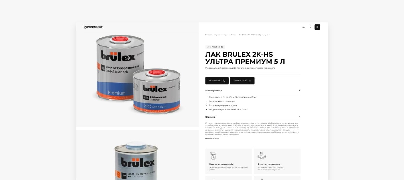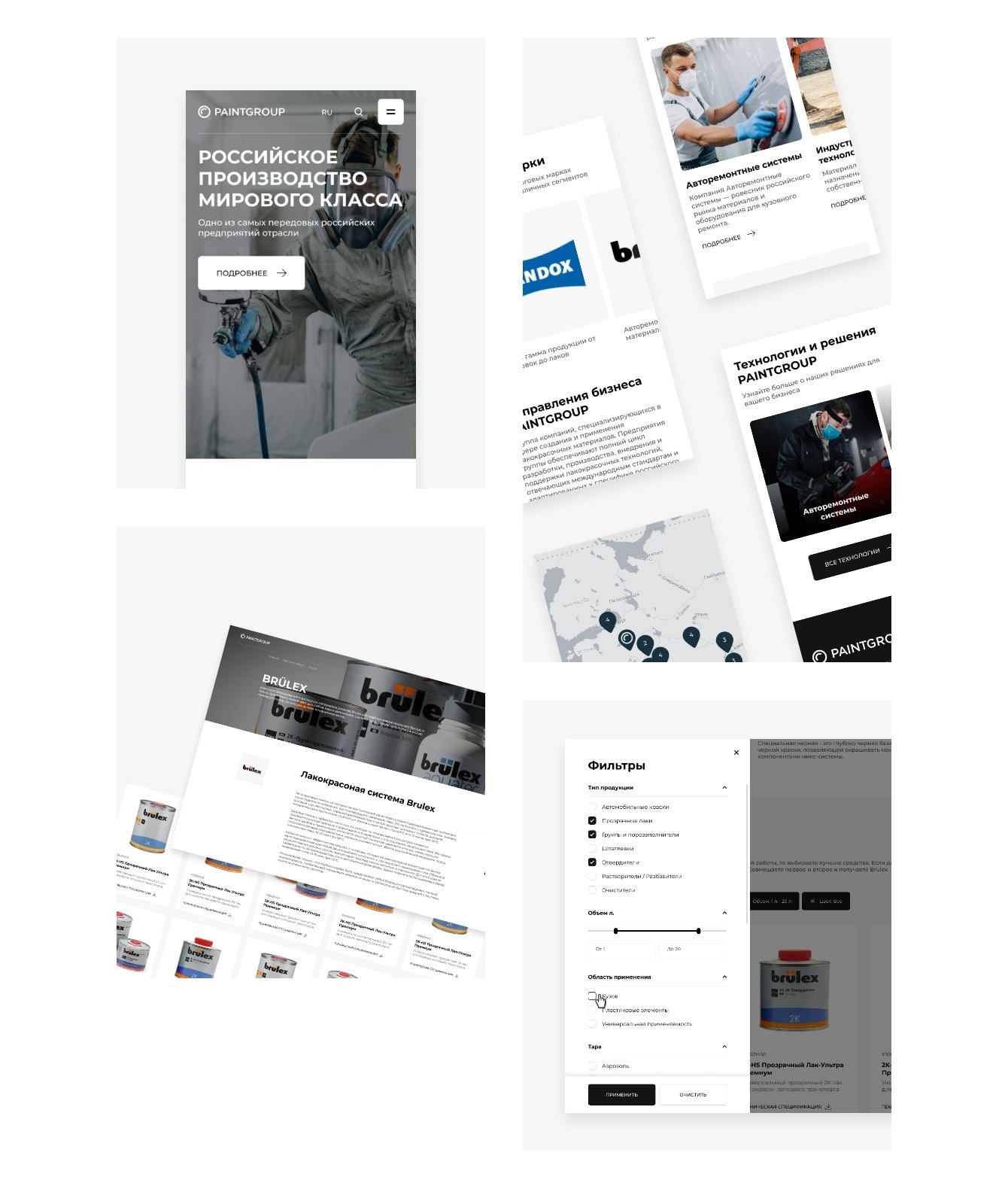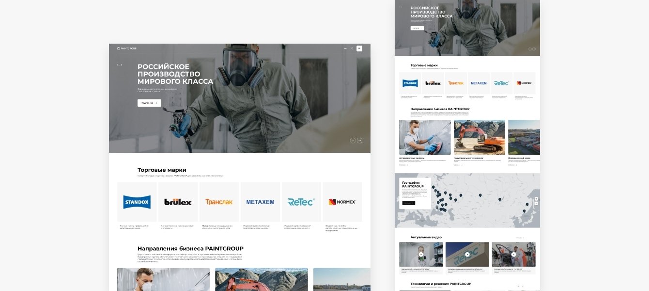 Мы проанализировали большое количество сайтов в данной отрасли, в том числе зарубежных. Изучили их структуру, основные фишки и разработали свою концепцию, основанную на прозрачной подаче контента, чтобы рассказать о полном цикле производства лакокрасочных покрытий, от разработки формул до внедрения технологий в работу предприятий.