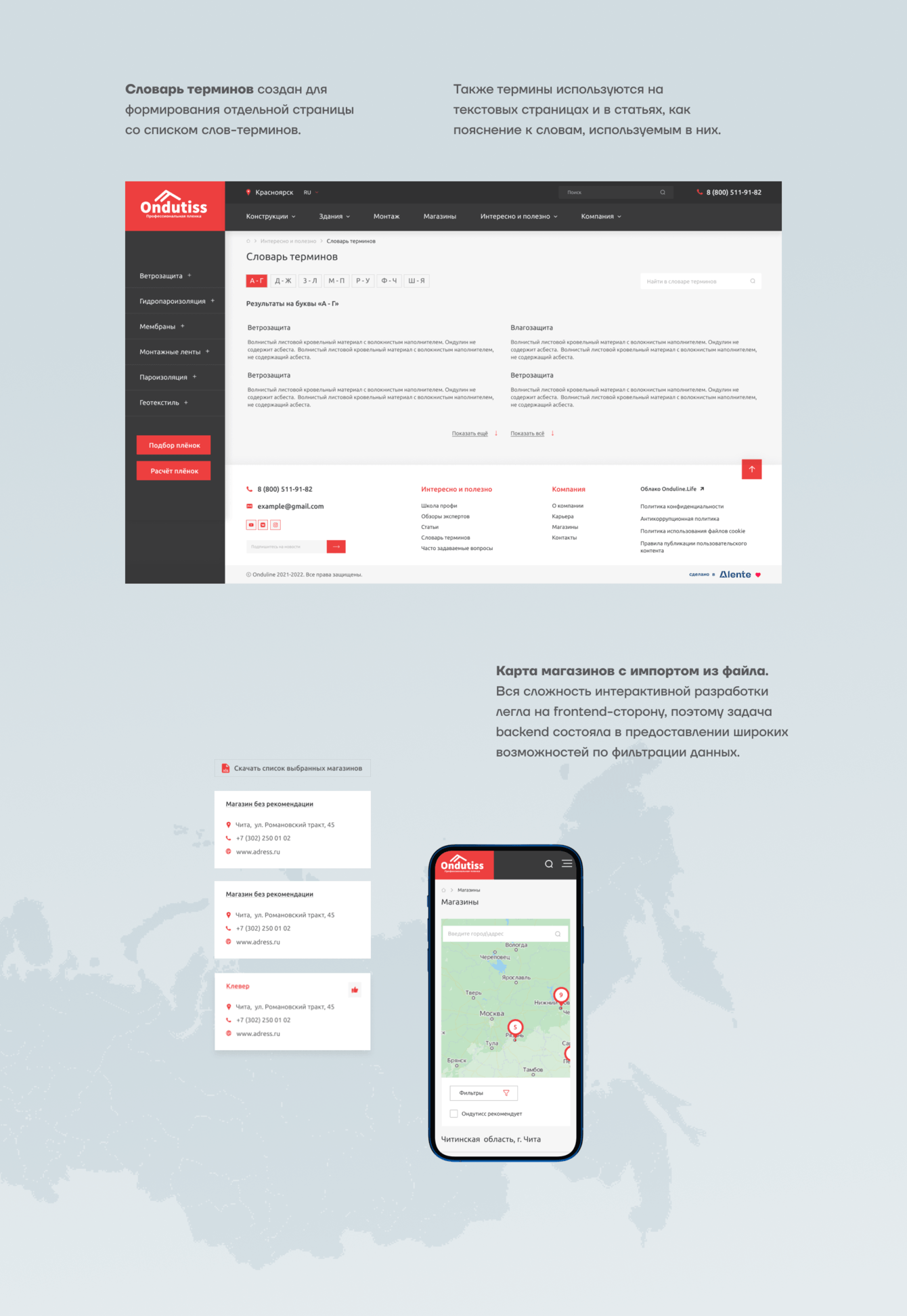 Для реализации такой логики было решено отслеживать координаты видимой части (границ) карты и передавать их в запросе, чтобы получить актуальный список магазинов и их корректное отображение. Без внимания не остались и всплывающие подсказки (тултипы). Они были нужны на всех текстовых страницах, чтобы пояснять содержание терминов.