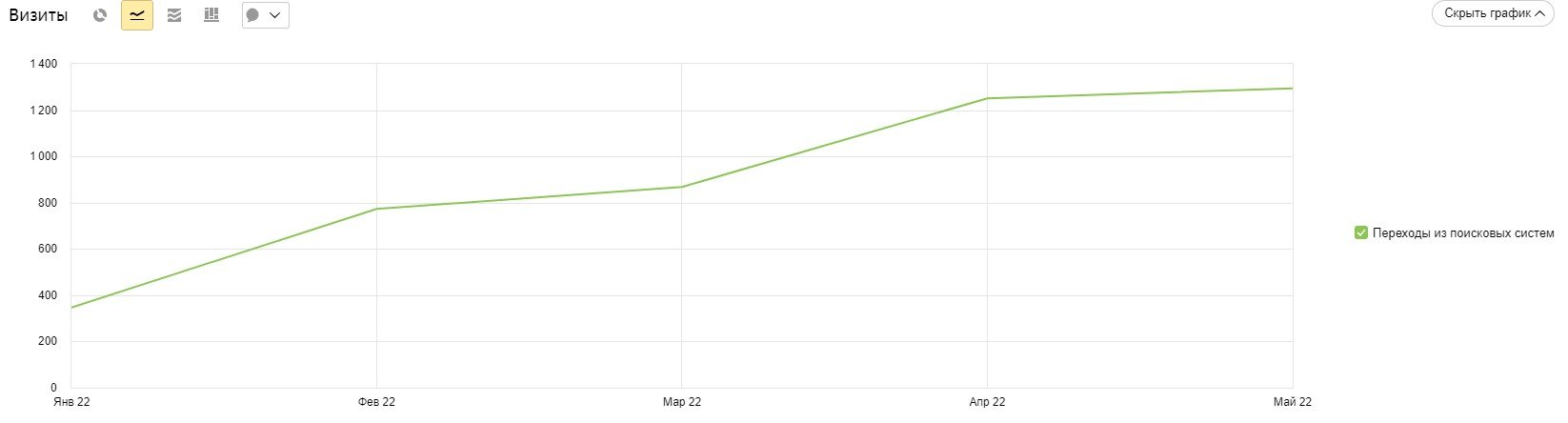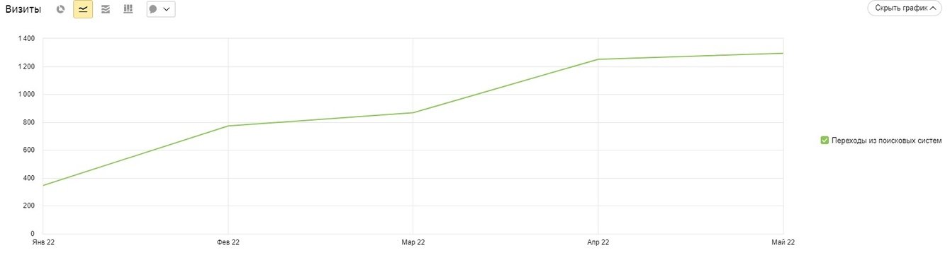 За первые 4 месяца поисковой трафик увеличился на 300% процентов.