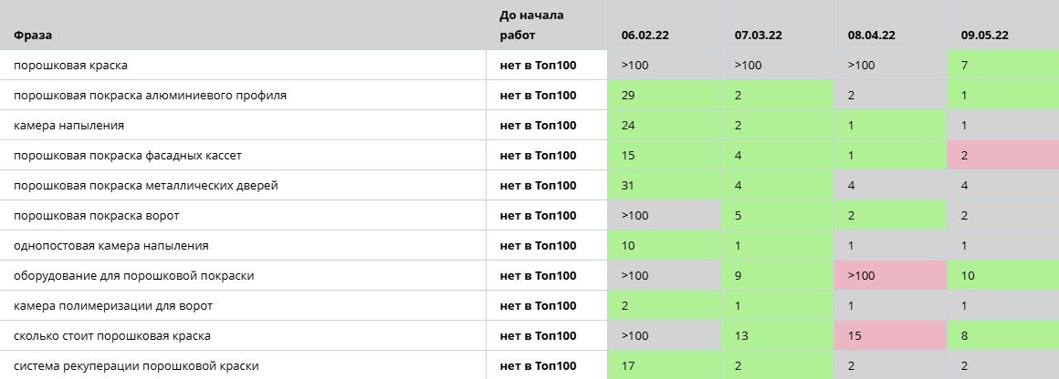 Добились выхода фраз в ТОП-10 в рекордные сроки