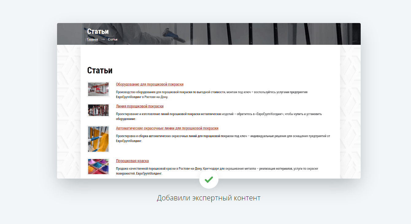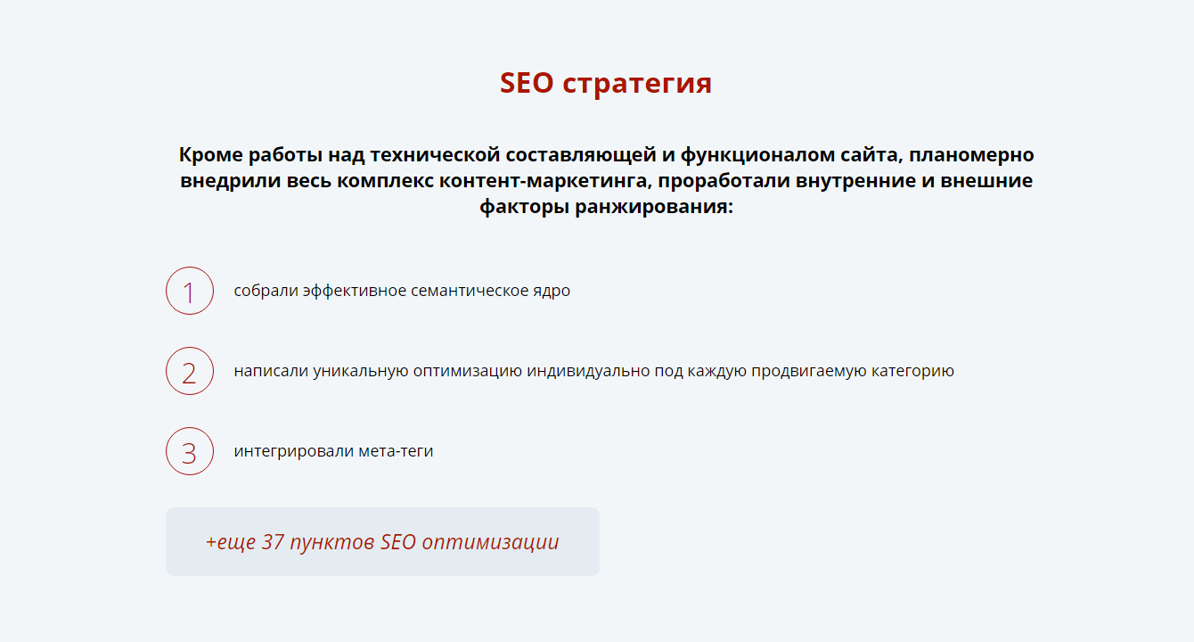За счет оптимизации кода и верной настройки индексирования (с помощью robots.txt), удалось за 4 месяца увеличить количество страниц в поиске и сделать сайт видимым в выдаче, что увеличило посещаемость сайта в 3 раза.
