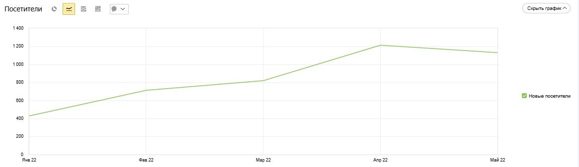 Количество новых посетителей за 4 месяца увеличилось до 1150.