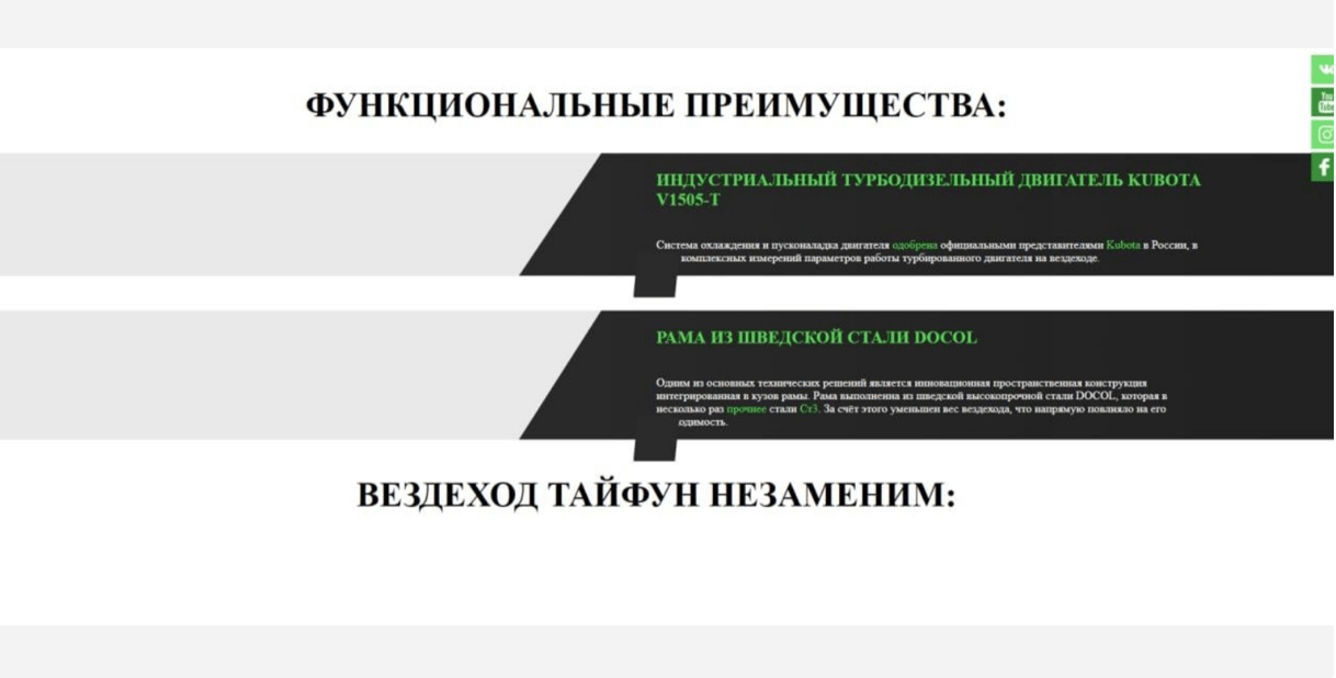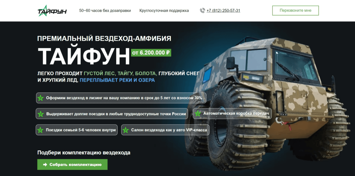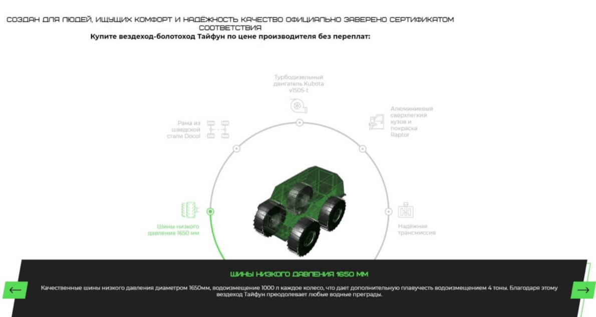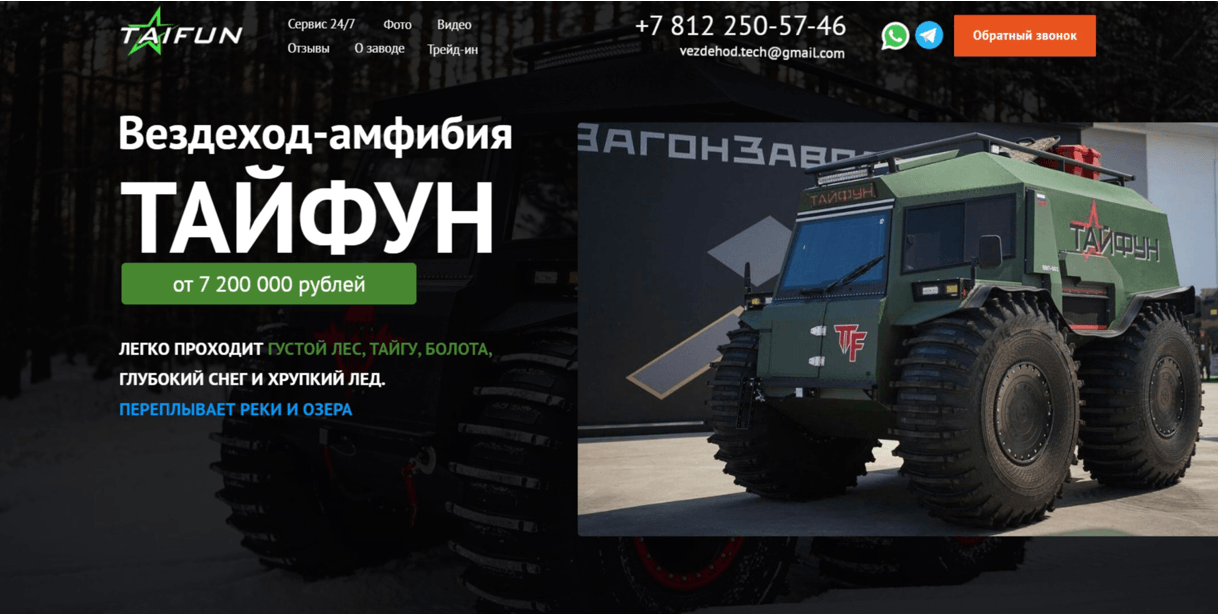 Компания «Тайфун» существует на рынке с 2017 года, занимается производством премиальной автотехники вездеходами-болотоходами на шинах низкого давления. В основу их конструкции вложены все передовые технологии и материалы современного машиностроения.