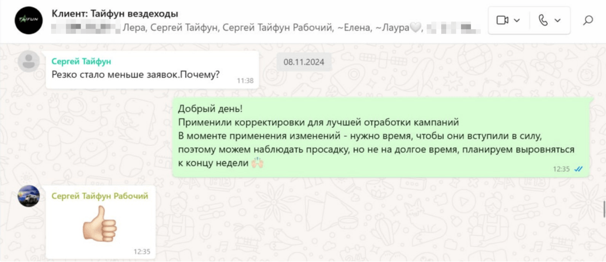 Стабильно мы собираем обратную связь у руководителя со стороны компании или собственника по качеству работы и на ее основе оперативно корректируем рекламные кампании.