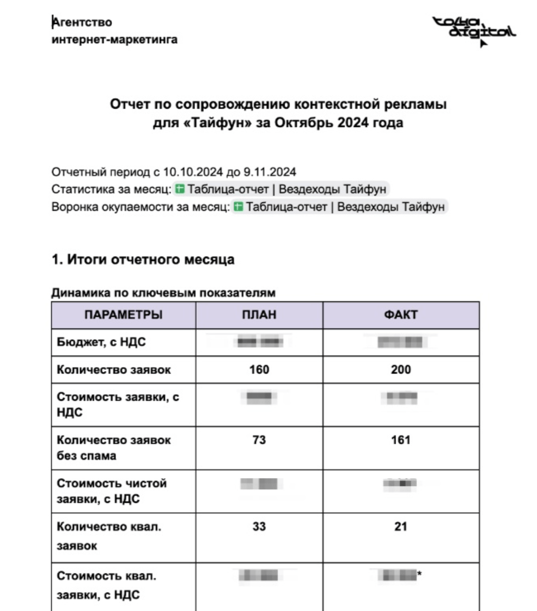 Также каждый месяц делаем итоговый отчет о проделанной работе, полученных показателях и ставим план на следующий месяц по показателям и задачам, отталкиваясь от целей клиента по выручке и в целом по бизнесу.