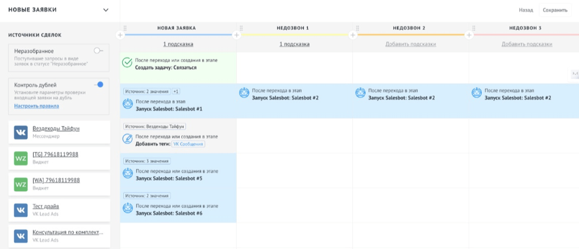 2. Описали воронку продаж, внедрили необходимые настройки: