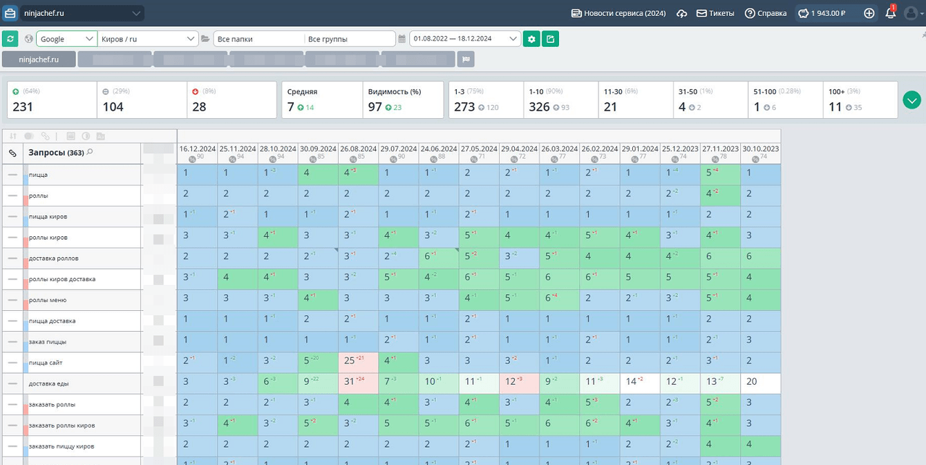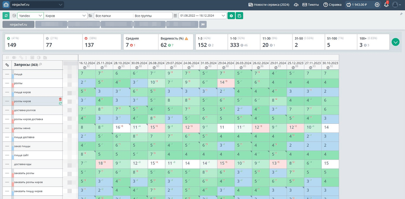 Работа над сайтом ninjachef.ru позволила вывести проект на новый уровень: увеличился органический трафик, улучшились поведенческие факторы, позиции в ТОП-10 закрепились. Улучшение структуры сайта, усиление ссылочного профиля и работа с контентом сделали сайт популярным и удобным для пользователей, укрепив его позиции в поисковых системах.
