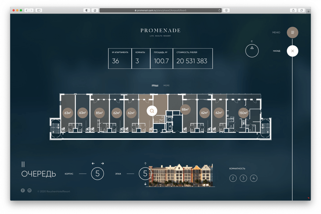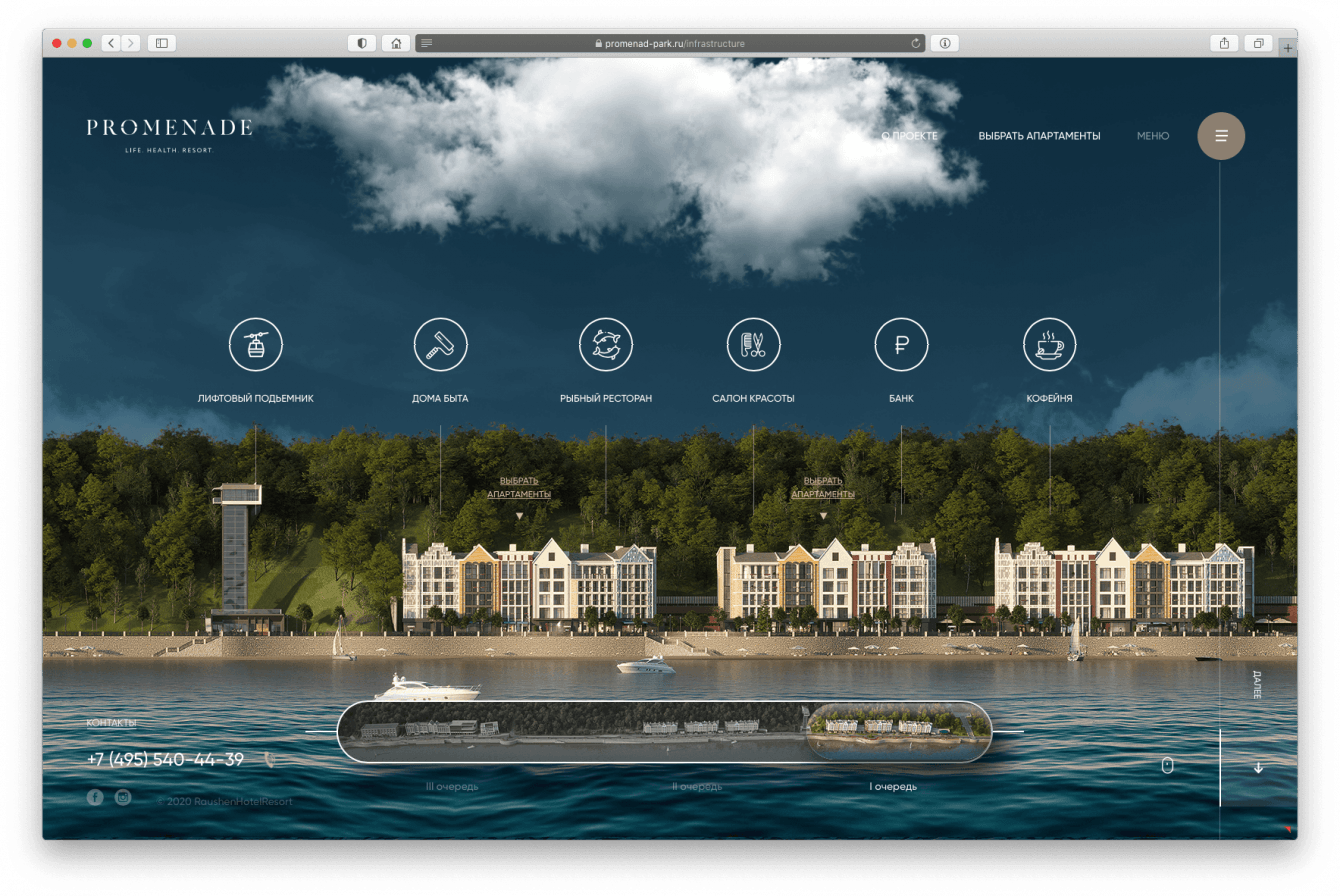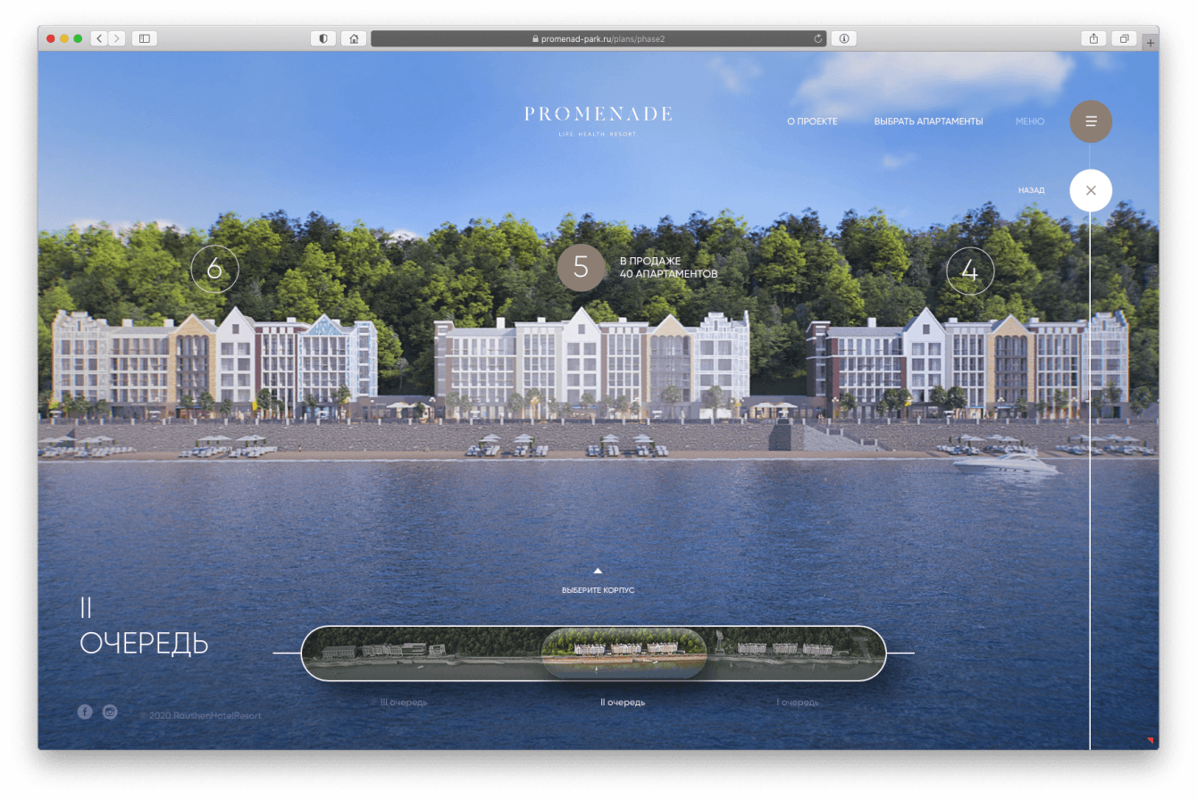 В ART3D разработали нейминг и бренд-платформу, key-visual, провели масштабную работу по созданию 3D-модели проекта (архитектура, благоустройство променада и прибрежной зоны, богатой инфраструктуры) и близлежащей территории, а также разработали все необходимые для вывода проекта в продажу материалы: продающие дневные, закатные и вечерние 3D-визуализации, разработали креативную концепцию и веб-сайт, включая мобильную версию, придумали сценарий и сделали короткометражный фильм-настроение по проекту, создав ощущение курортного городка, жизни, отдыха и бизнеса.