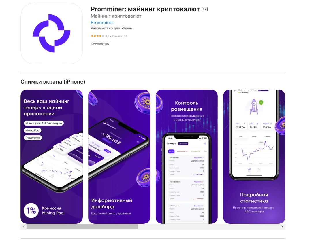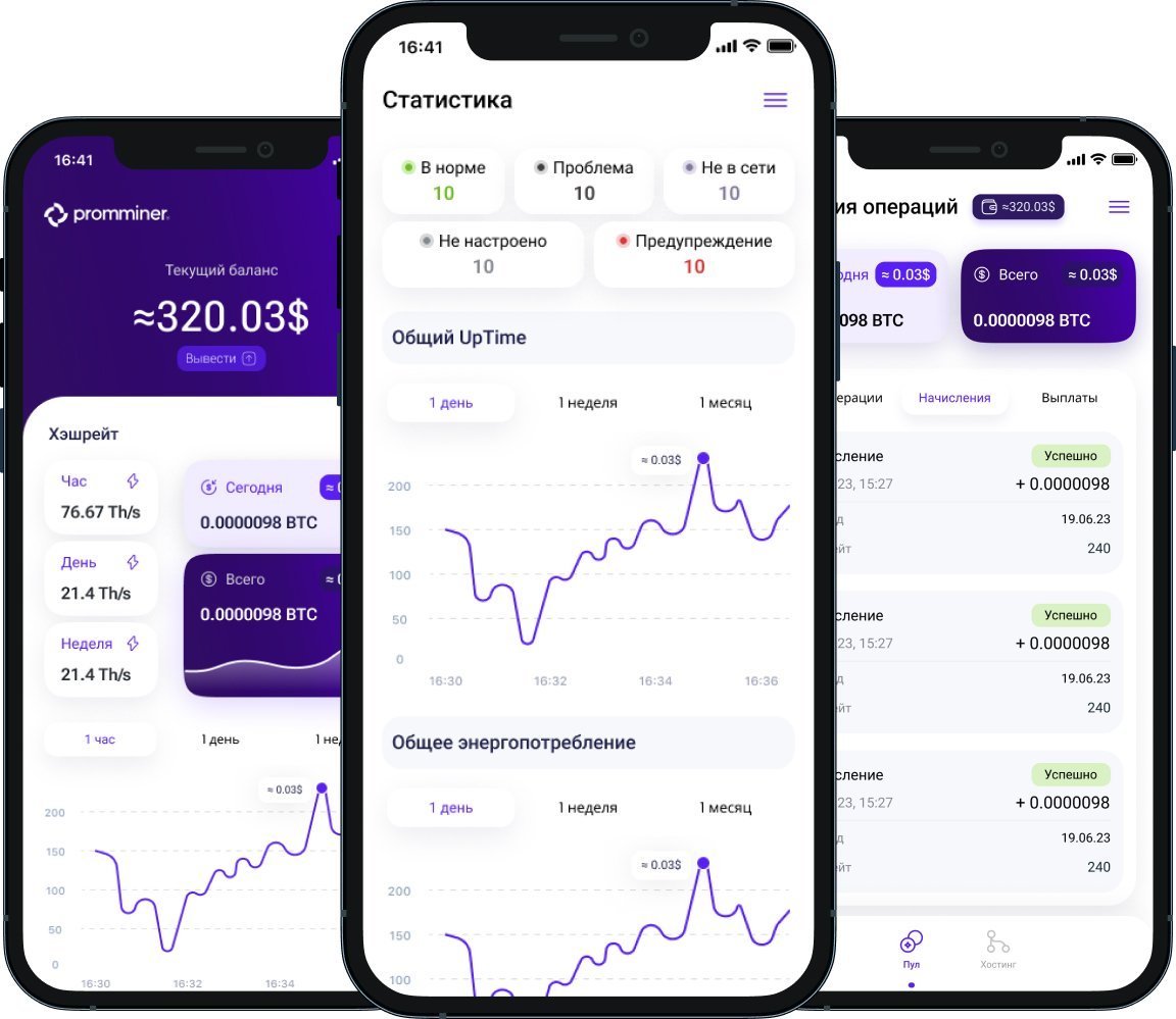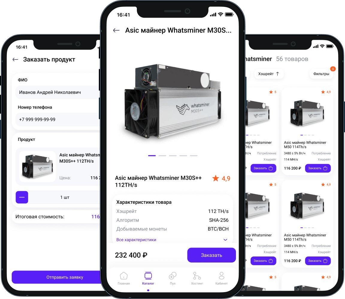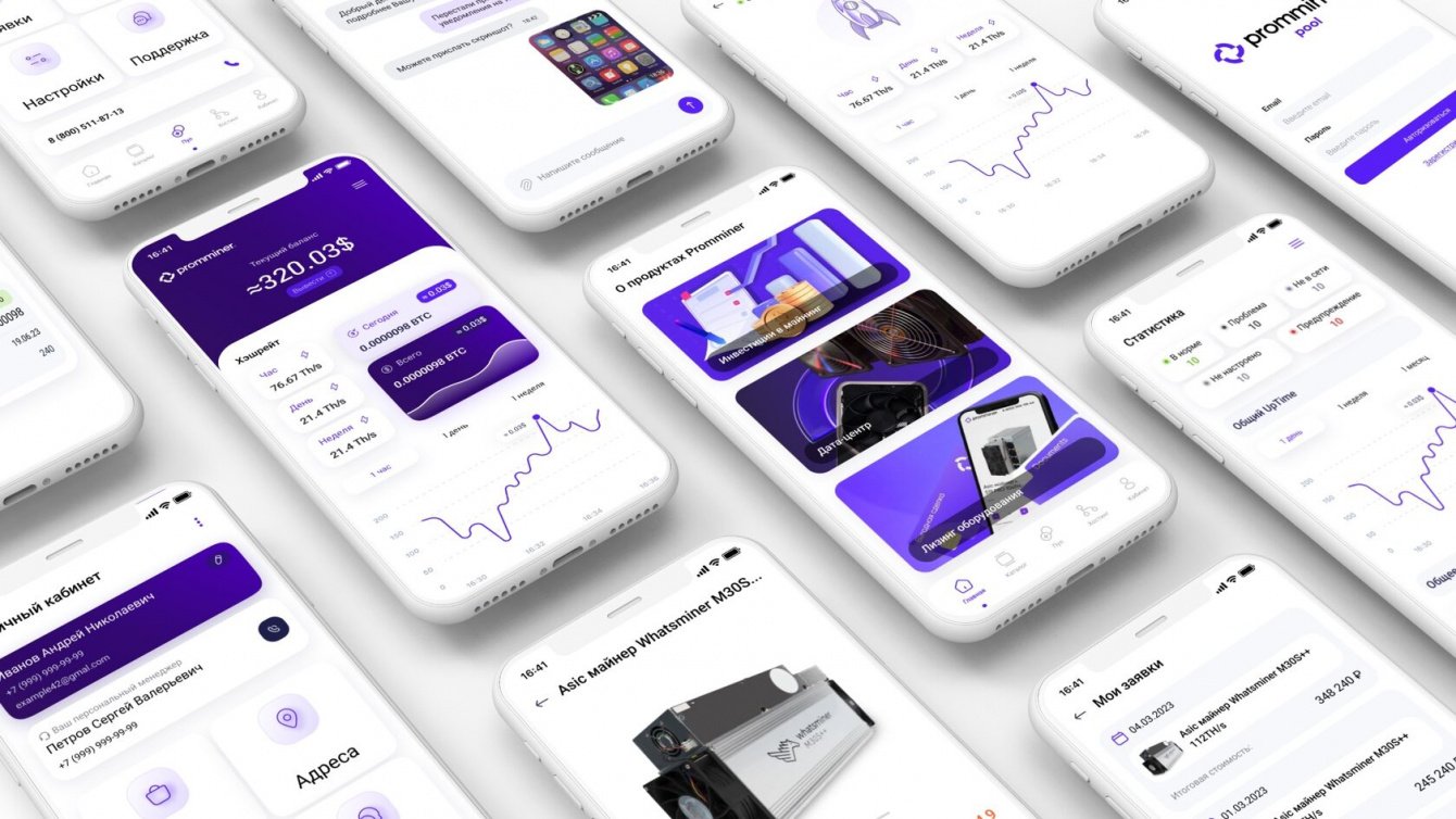 Интернет-магазин и личный кабинет для майнинга: разработка мобильного приложения Promminer (iOS/Android), пользователь которого сможет: