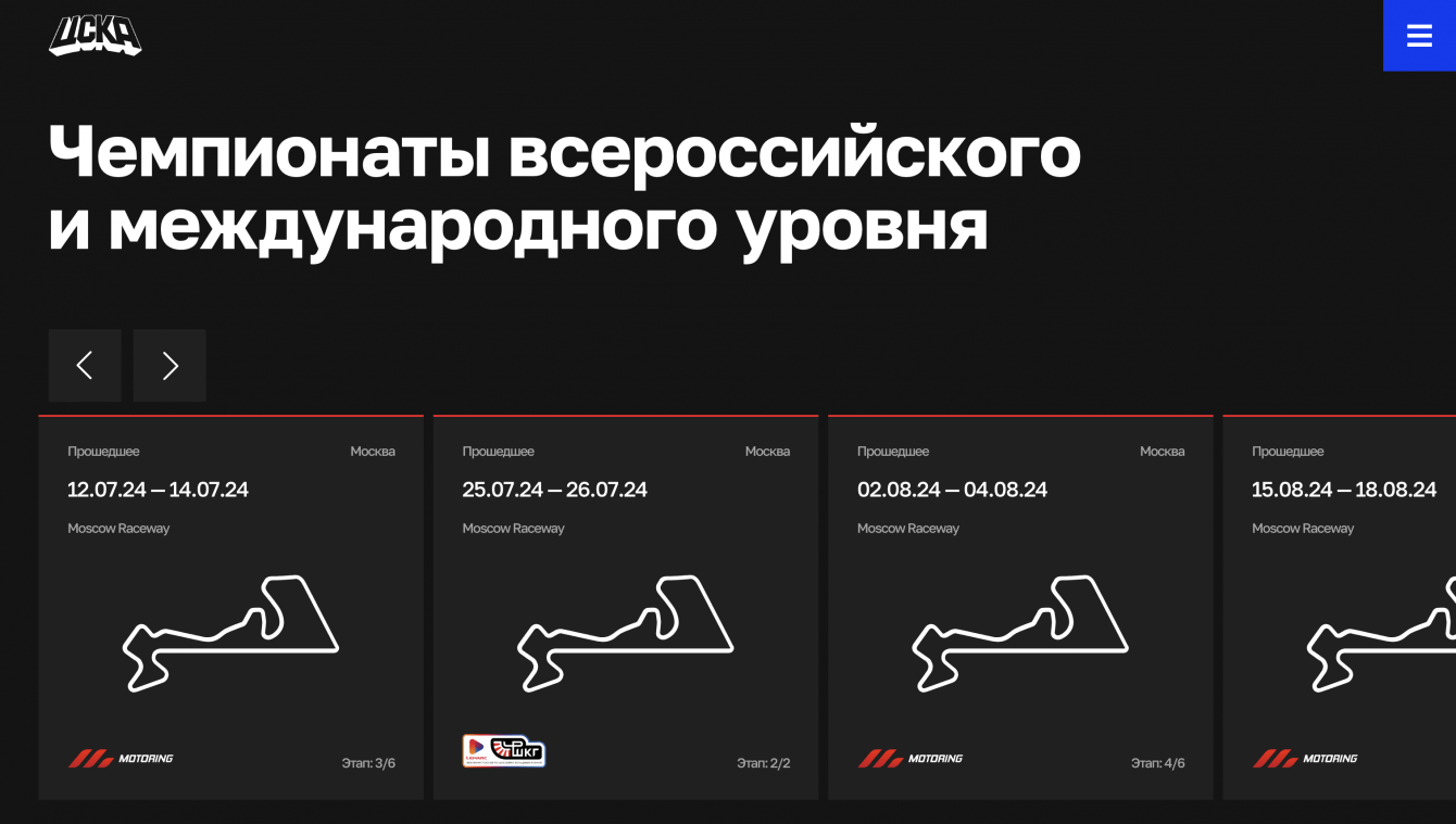 Просто рассказать о команде недостаточно, мы стремились показать её активное участие в чемпионатах. Поэтому сделали блок с прошедшими и будущими маршрутами гонок команды.
