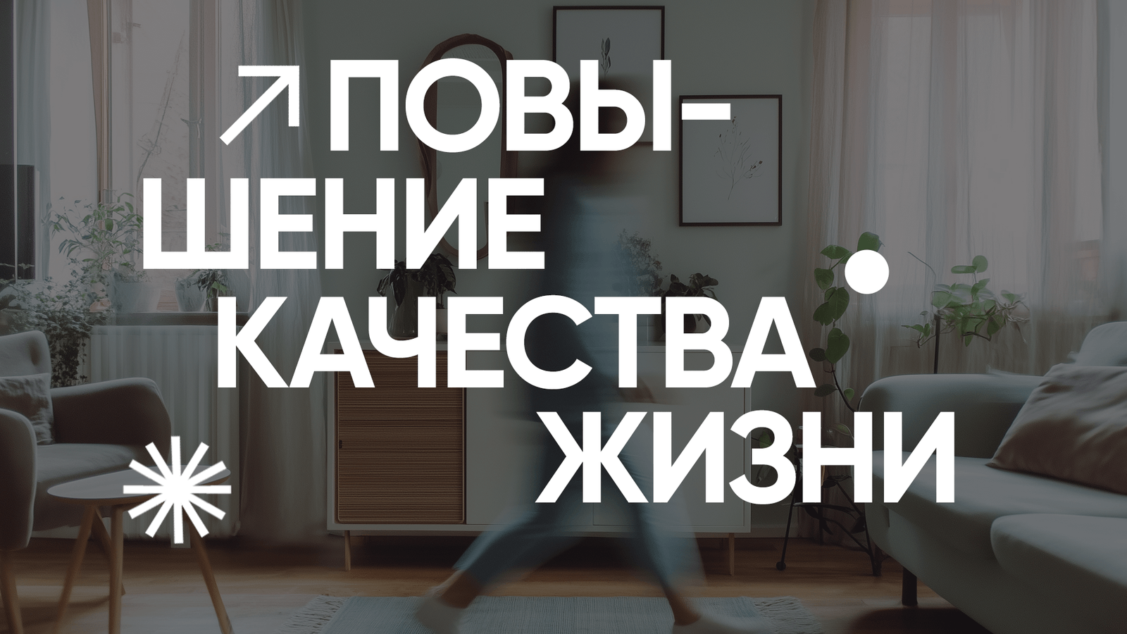 - Жизнь внутри: размытый силуэт в интерьере, символизирующий рост и активность;