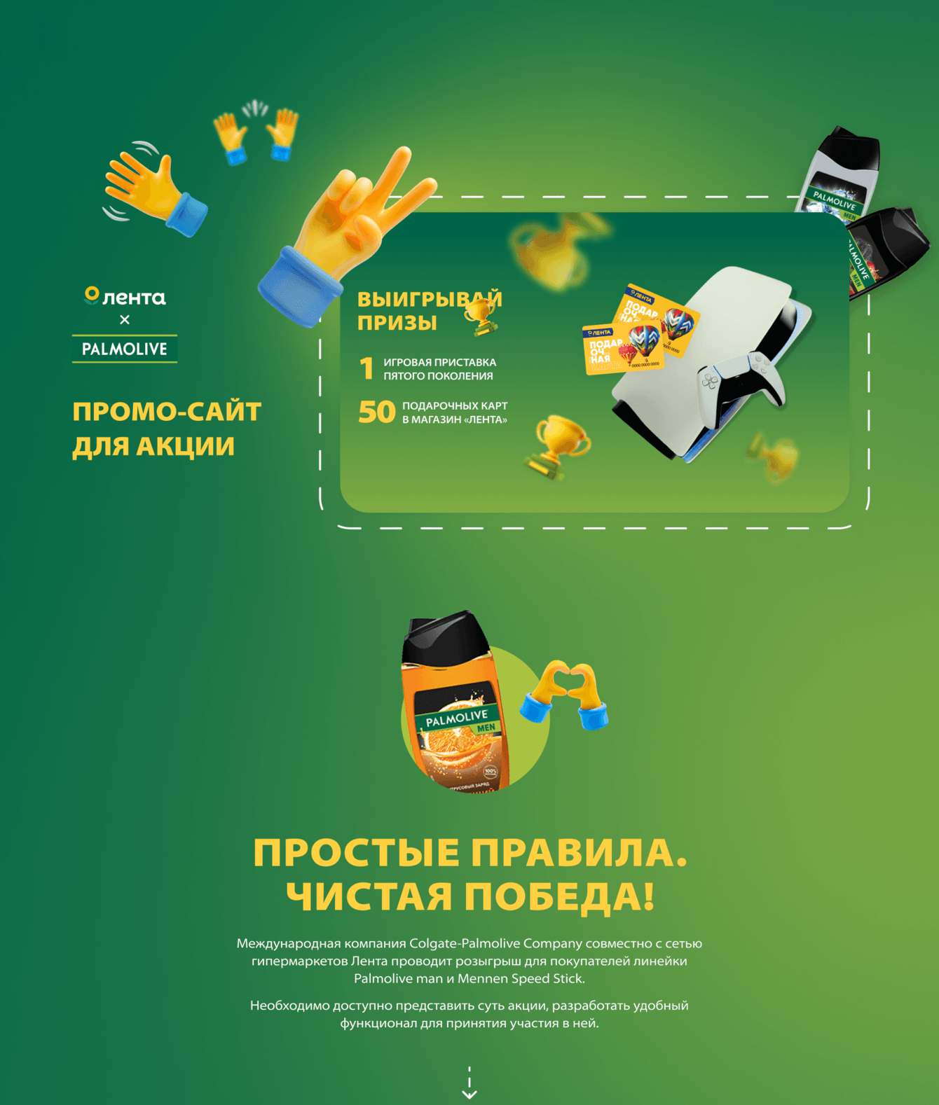 Дизайн акции получился сочным и современным, он отлично вписался в череду маркетинговых мероприятий компаний «Palmolive» и «Лента».